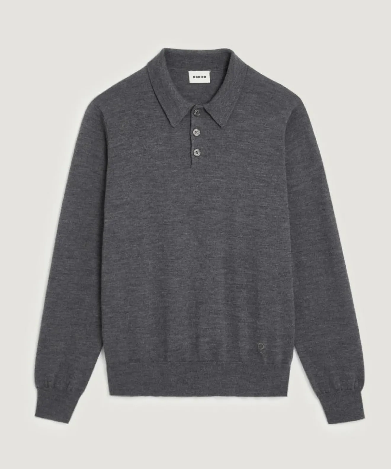 Homme Rodier Pull Guillaume 100% laine col polo gris foncé