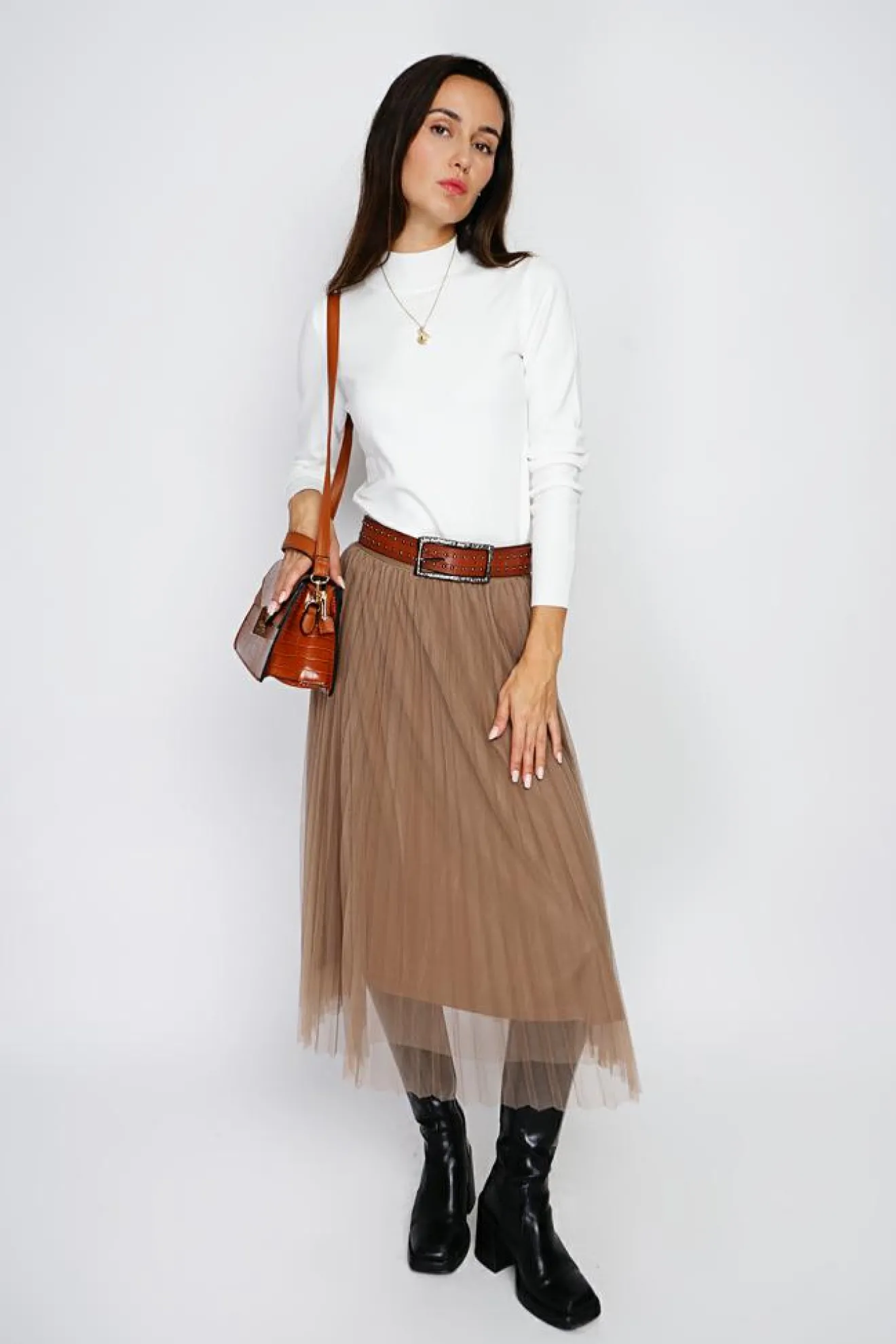 Hot Assuili Pull en Cachemire mélangé col montant naturel