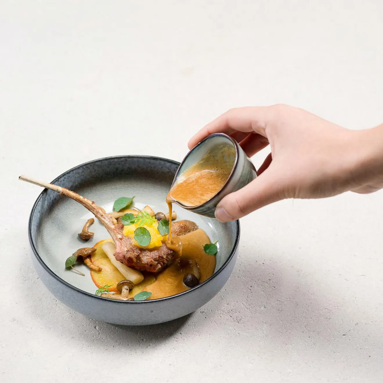 Une nouvelle collection de vaisselle particulièrement remarquable par les différents aspects qu’on retrouve sur les produits : un effet mat associé à un effet brillant, un effet craquelé combiné à un effet moucheté et enfin une association de 2 couleurs mise en avant grâce à un contour noir autour du puit de l’assiette et autour de l’aile de l’assiette