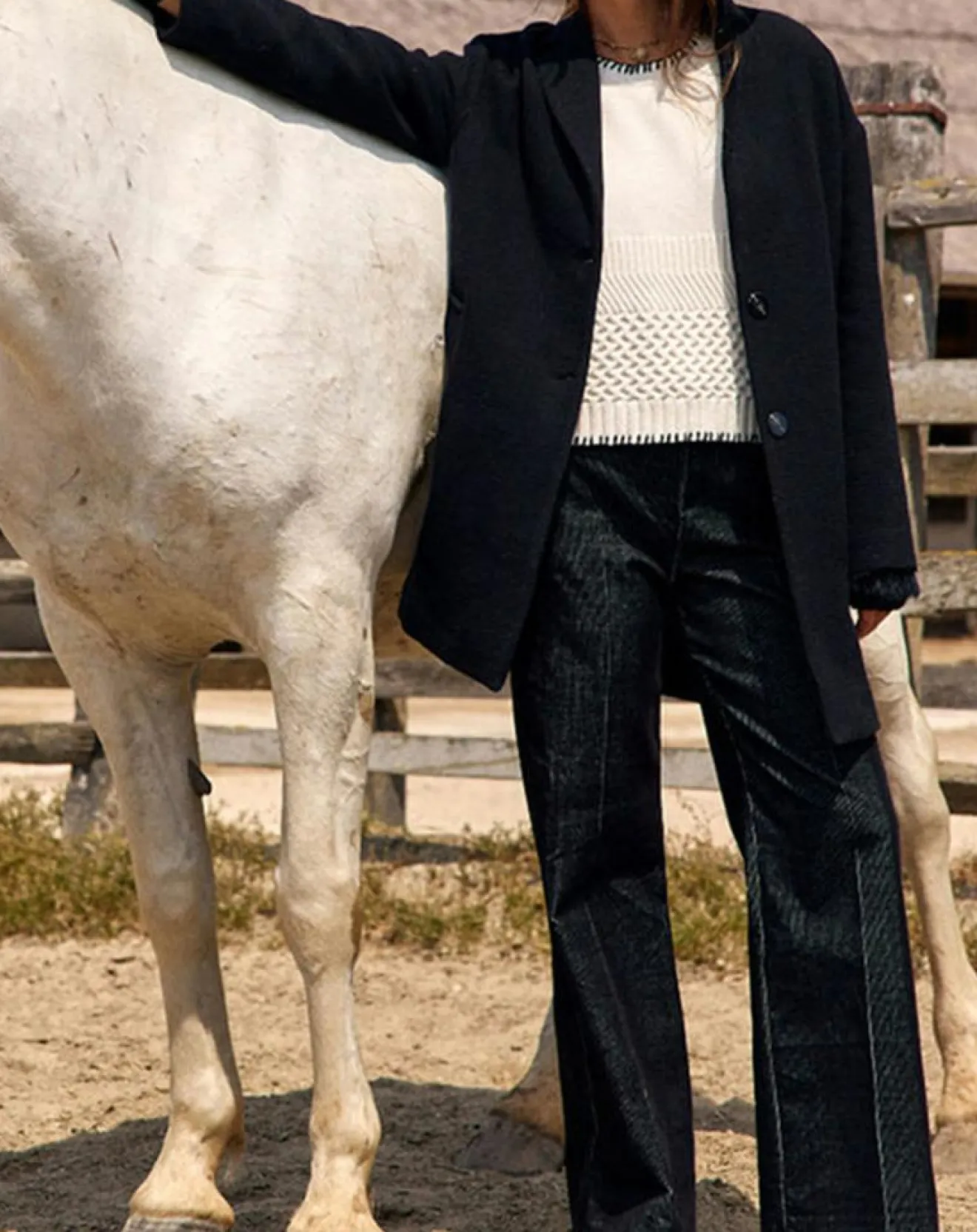 Notre modèle porte le manteau Mirav pour une allure chic et branchée pour vos soirées à venir