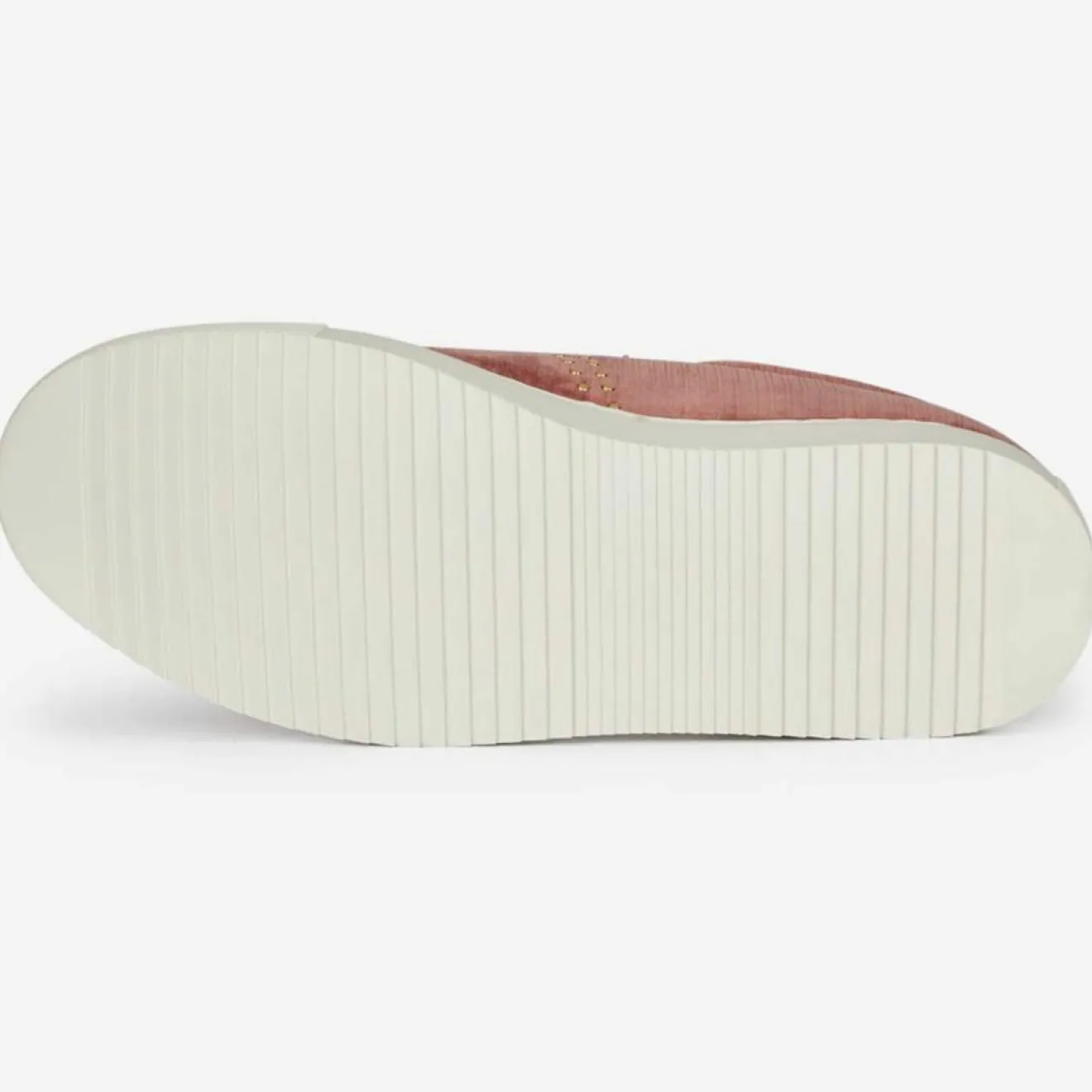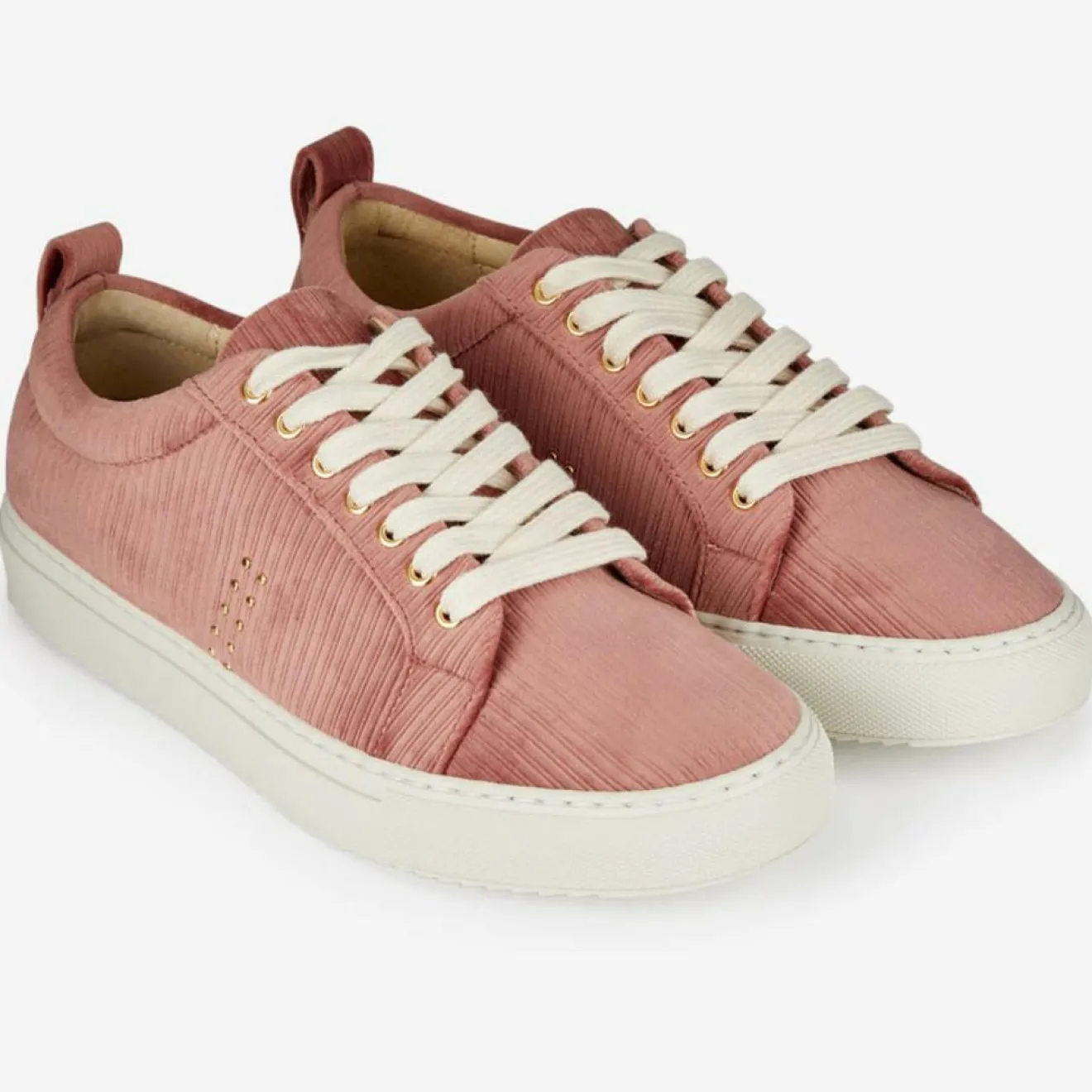 Ces baskets basses vieux rose M. Moustache confectionnées en velours côtelé, présentent un laçage, des clous dorés sur les côtés ainsi qu’un tirant d’enfilage
