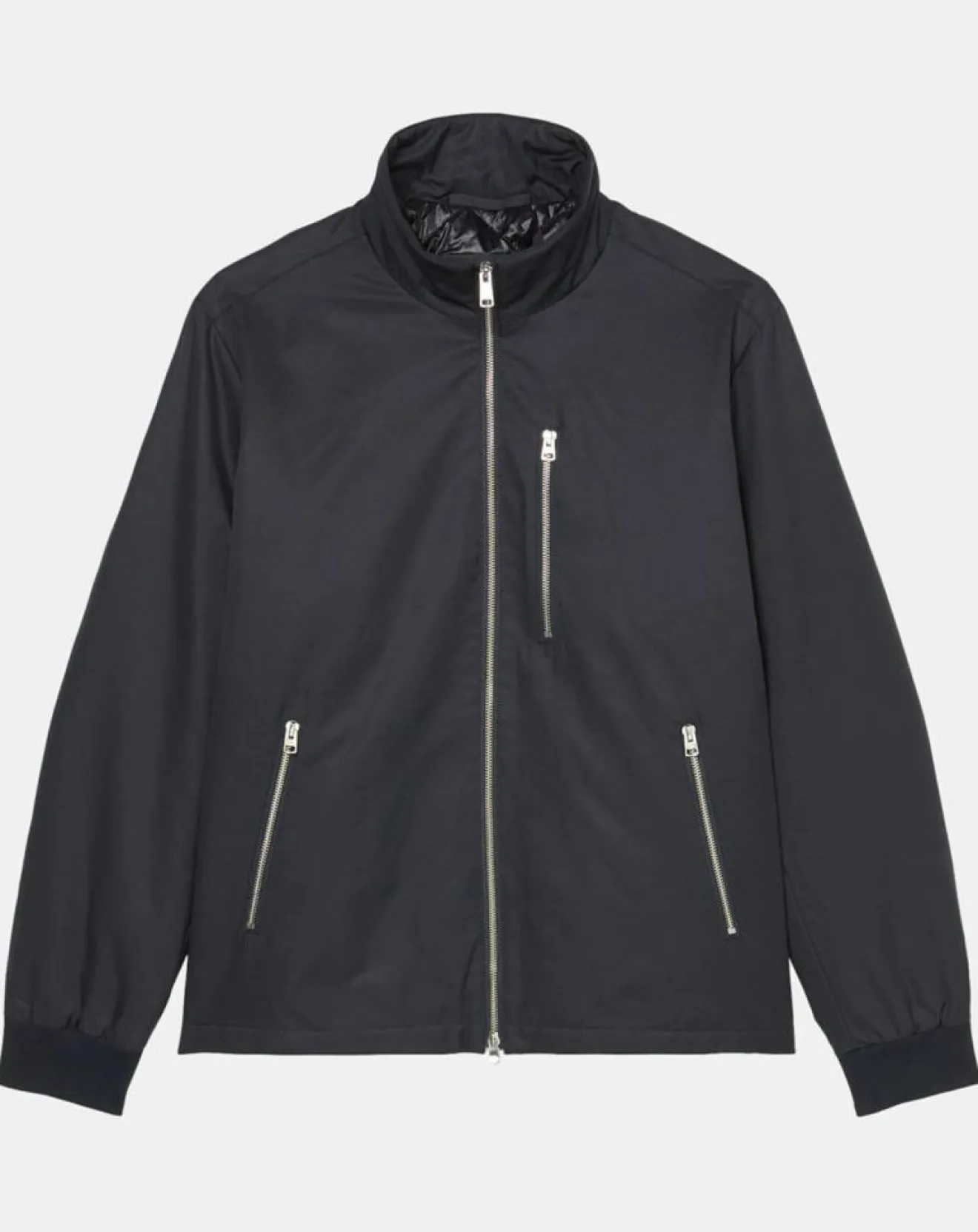 De coupe Regular Fit masculine, à col droit montant, zip authentique sur le devant, bordures souples au bas des manches et poches fendues zippées sur les côtés.