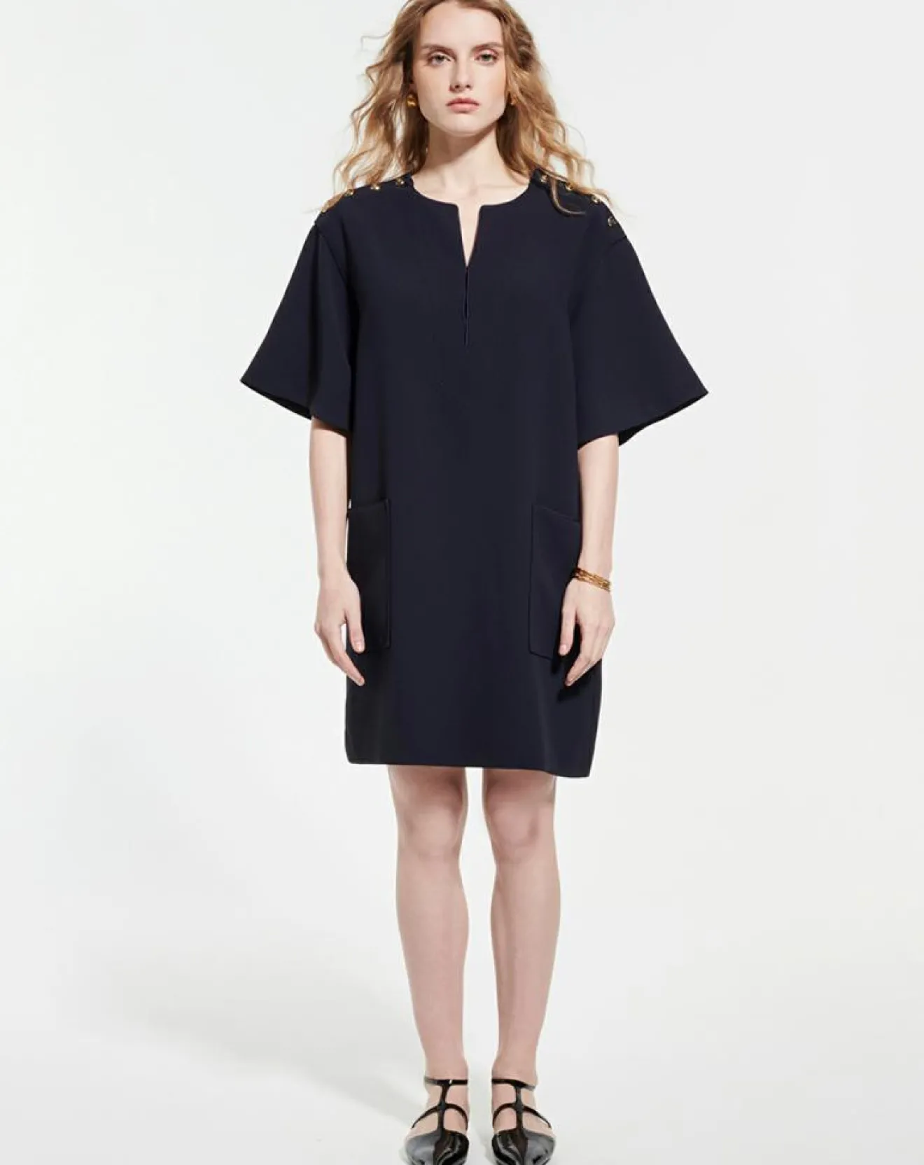 Détails boutons dorés sur les épaules