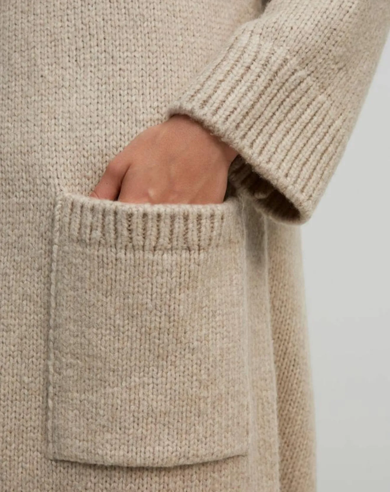 Notre uniforme mode préféré lors de la saison fraîche ? Les cardigans longs super décontractés et les grosses bottines ! Confortable, casual et douillet, le manteau en maille est confectionné en laine vierge mélangée de premier choix.