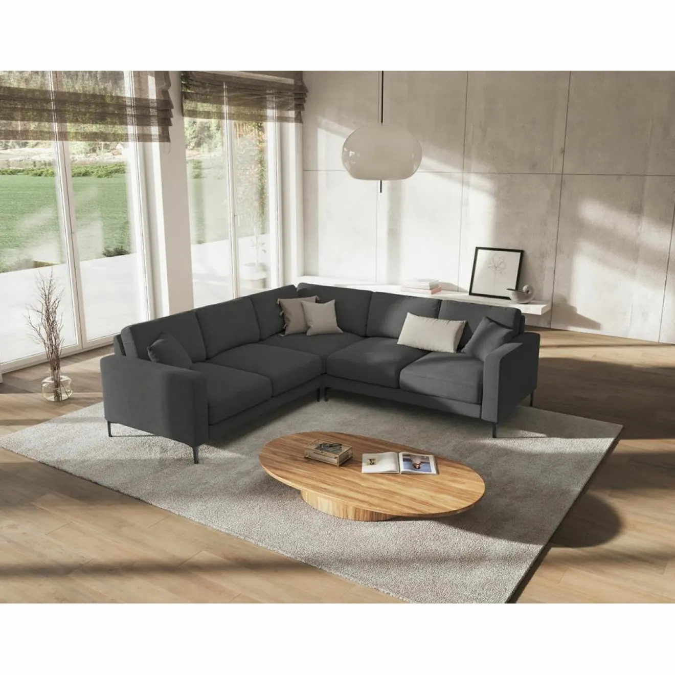 Tissu structuré avec un effet clairement visible de fils entrelacés. Tressé à partir de fibres synthétiques. Il imite le tissu de lin. (Test Martindale 25 000, 380 g / m²). Le tissu a réussi le test de la cigarette, ce qui signifie que le système de rembourrage est résistant à la combustion lente et à l’inflammation des flammes et est conforme à la norme PN-EN 1021-1 : 2014-12.