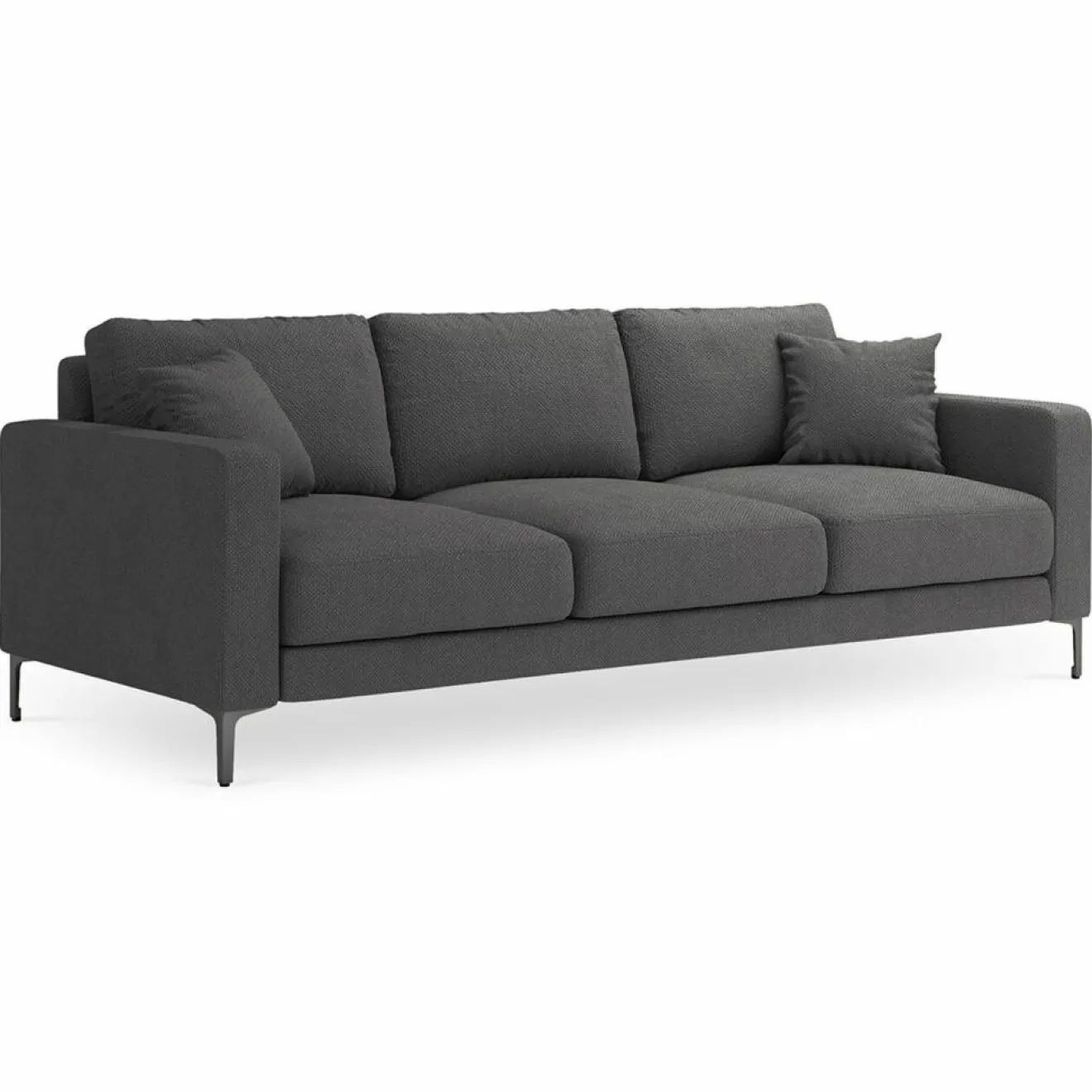 Tissu structuré avec un effet clairement visible de fils entrelacés. Tressé à partir de fibres synthétiques. Il imite le tissu de lin. (Test Martindale 25 000, 380 g / m²). Le tissu a réussi le test de la cigarette, ce qui signifie que le système de rembourrage est résistant à la combustion lente et à l’inflammation des flammes et est conforme à la norme PN-EN 1021-1 : 2014-12.