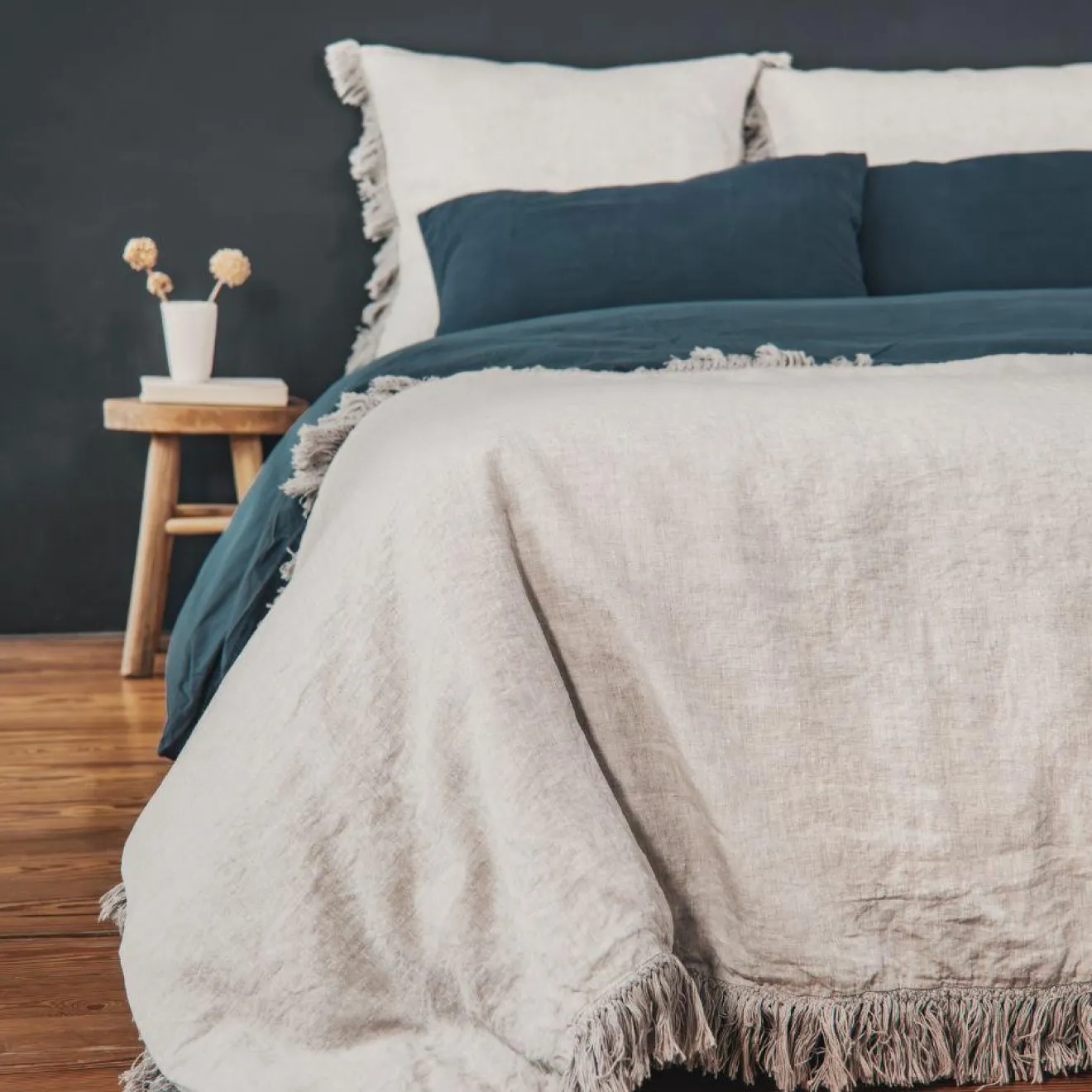 Le coussin XXL HUGFRANGE, coloris Orage, en 100 % lin lavé, apporte une touche de fraîcheur et de confort à votre literie. Avec ses dimensions de 80 x 80 cm, il garantit une sensation de douceur agréable pour vos nuits. Ses finitions frangées et la fermeture à boutons lui confèrent un charme subtil et raffiné. Facile d’entretien, sa housse est lavable en machine à 40°C.
