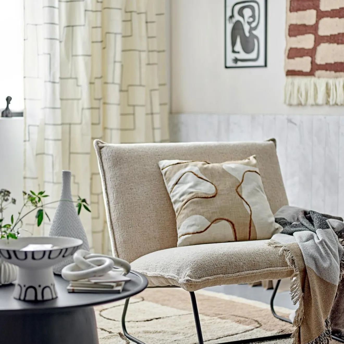Le plaid Orinoco de Bloomingville est tissé à partir de coton recyclé avec un beau motif dans des couleurs beige et brun. Le tapis est réversible, car il a des motifs de chaque côté.