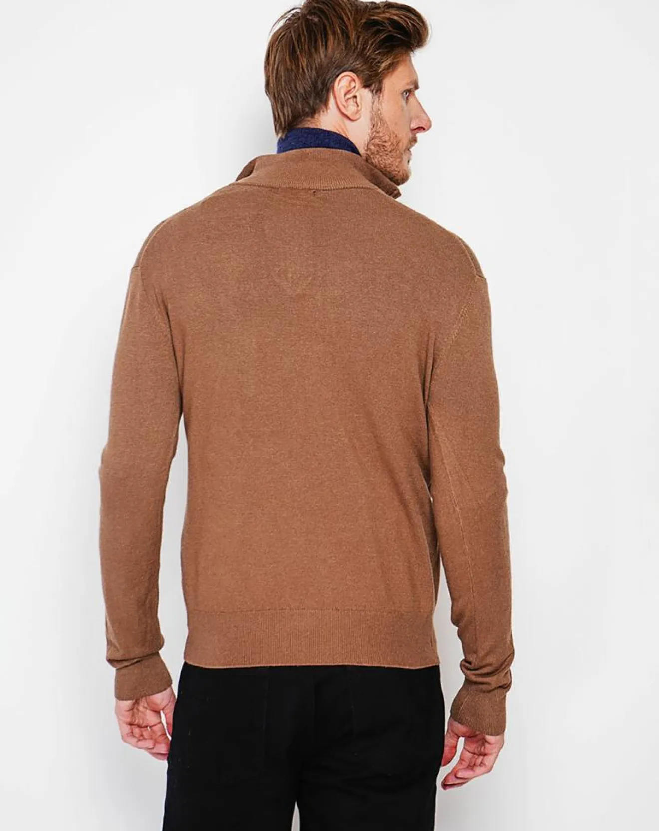 Pull col camionneur zippé à manches longues tricotage en 3 fils