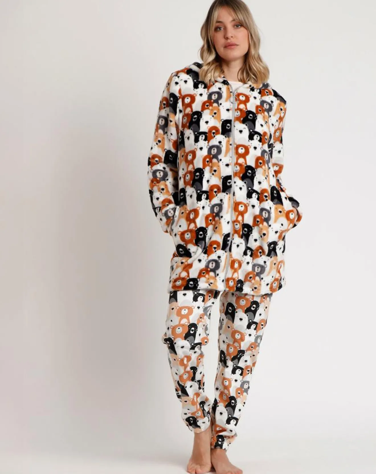 Peignoir à capuche femme Family Bear Family C marron