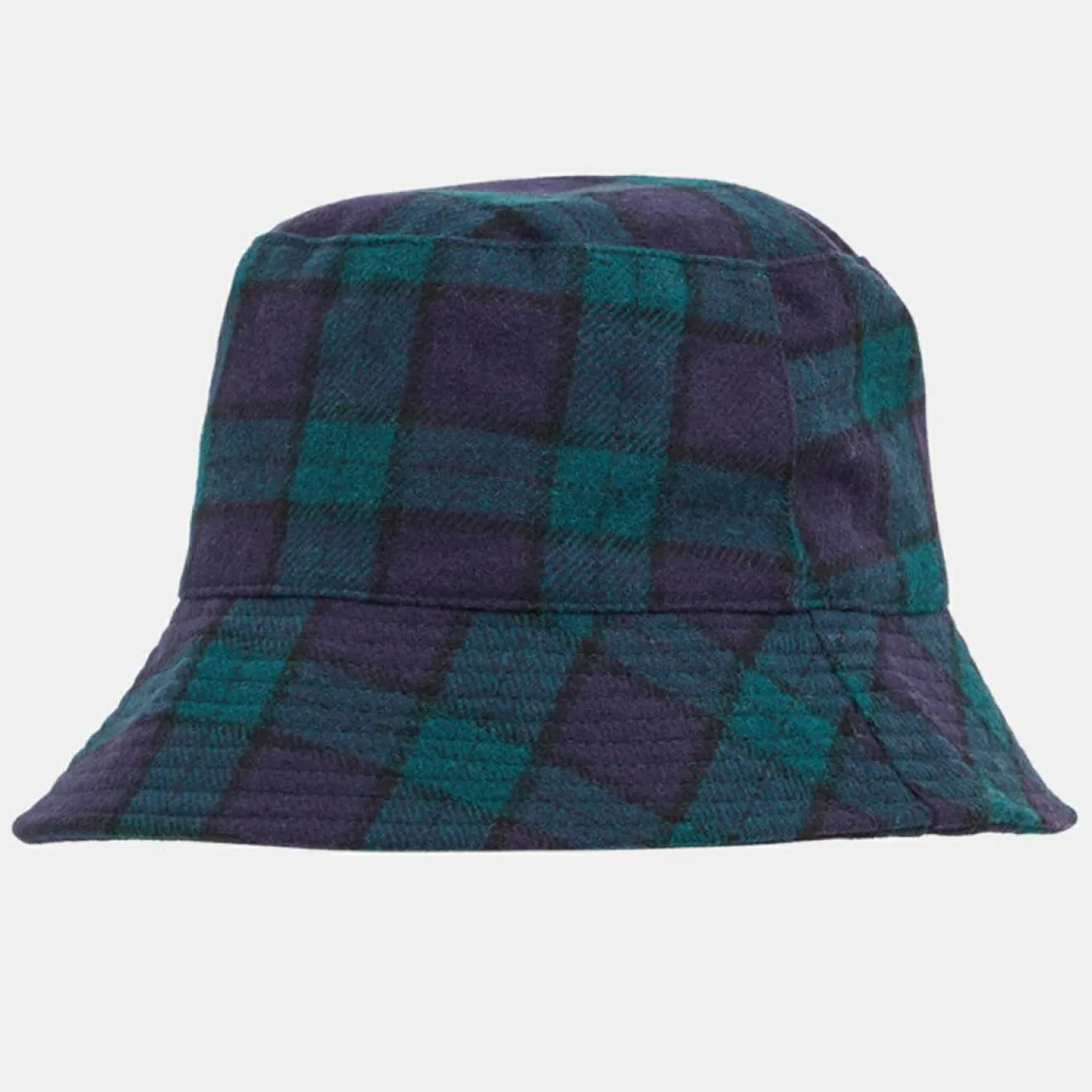 Ce bob bucket Galeries Lafayette présente un imrimé tartan et une doublure en tissu.
