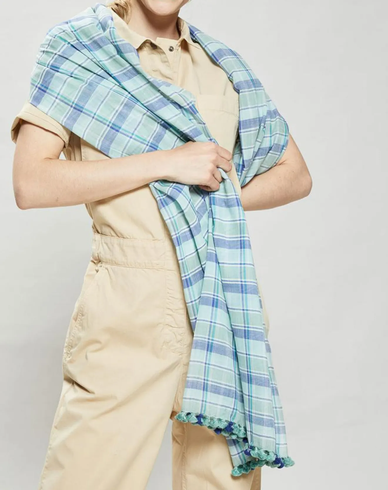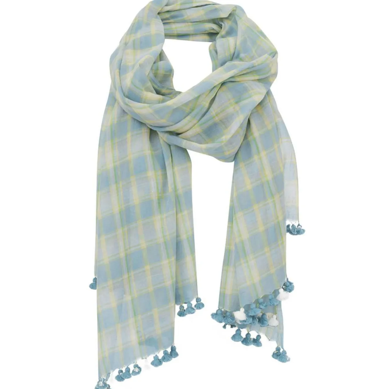 Grande écharpe en coton très doux bordée de pompons