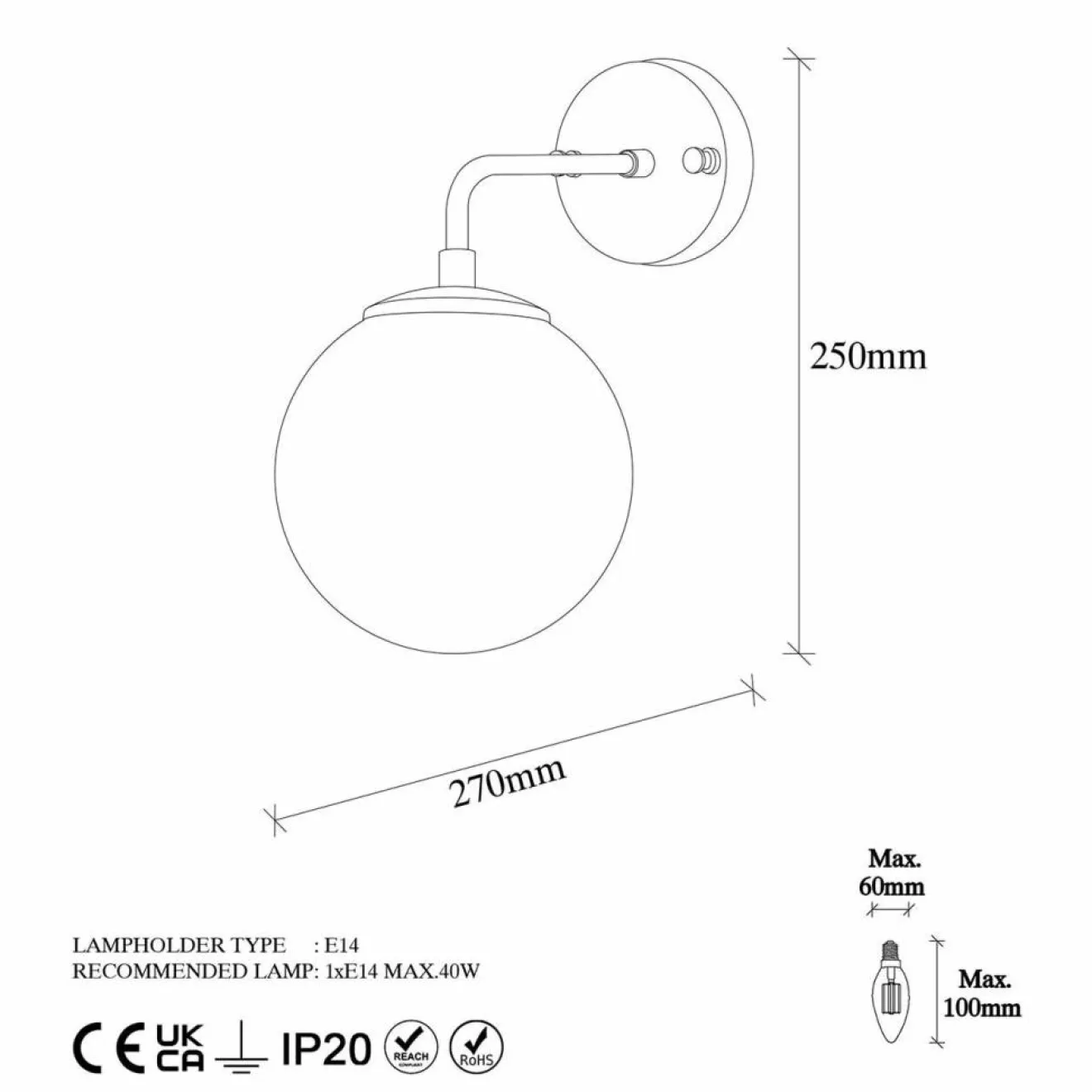 Type de douille : E14 Max 40 W