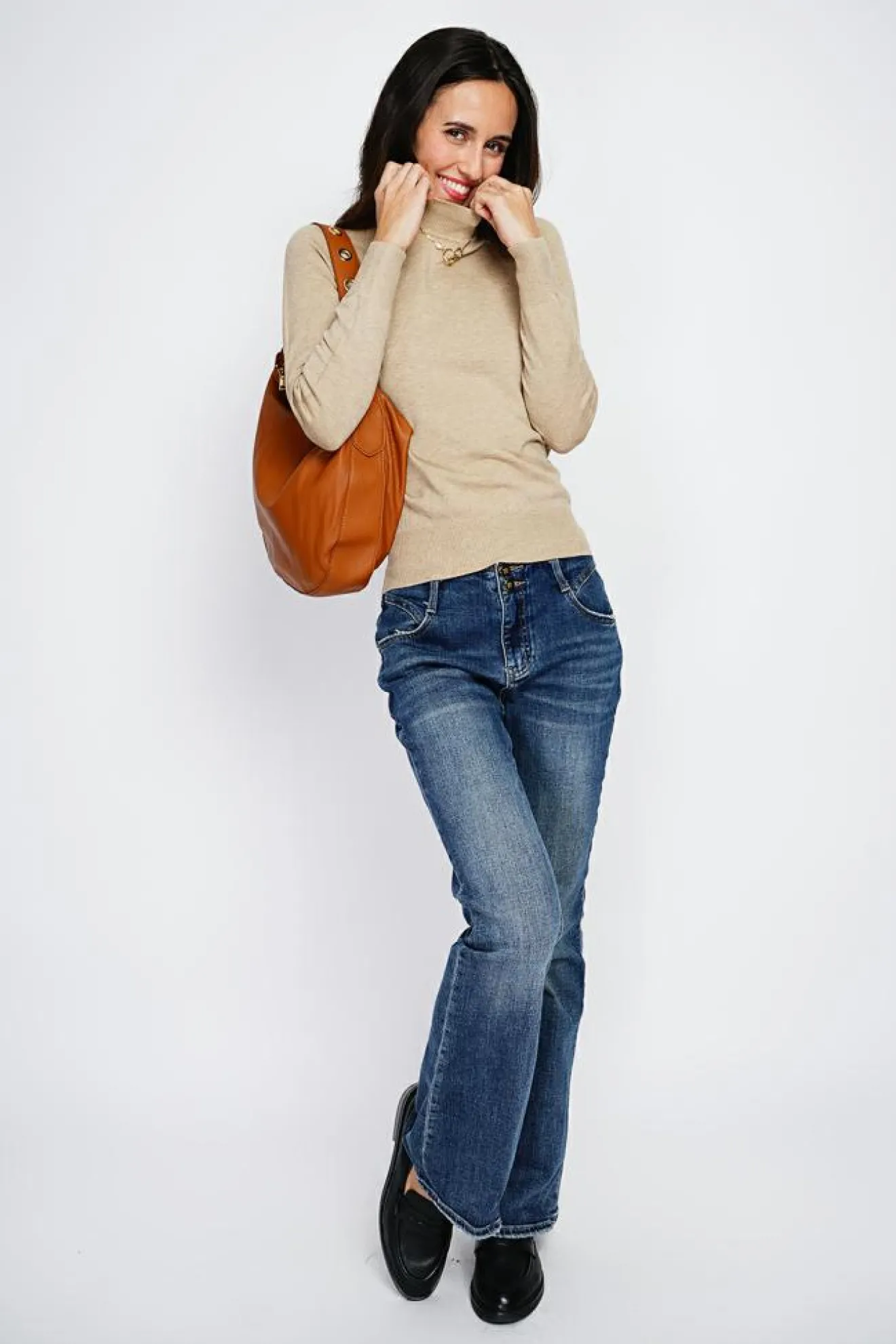 Outlet Assuili Pull en Cachemire mélangé col montant camel