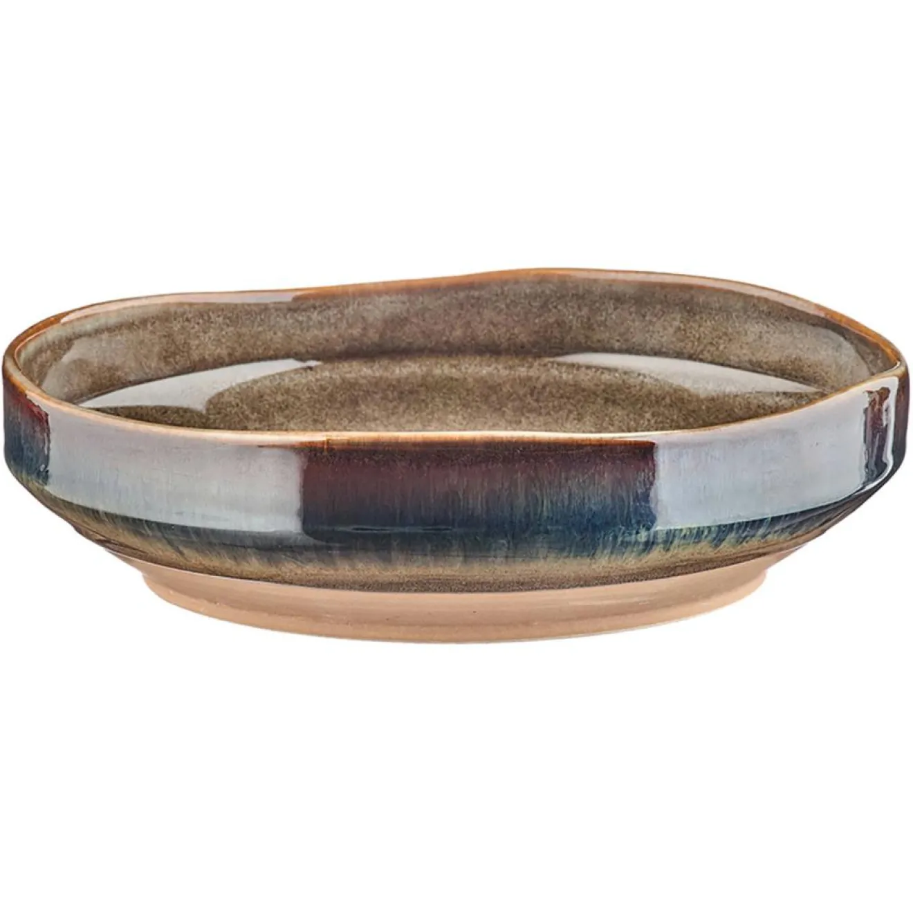 Après une première cuisson de l’argile à basse température, des émaux réactifs de couleurs différentes s’appliquent sur le grès et lui donnent un relief unique et éclatant. L’apparition de nuances de teintes que l’on retrouve d’une pièce à l’autre est le résultat d’un savant mélange artisanal des techniques de cuisson et du mode d’application de l’émail.