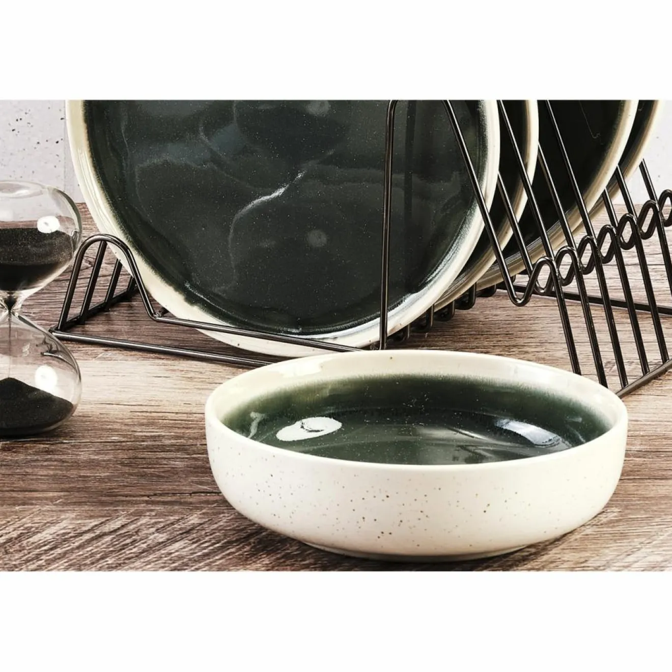 Les pièces de vaisselle sont ensuite recouvertes d’un émail d’une autre couleur pour faire ressortir l’effet réactif