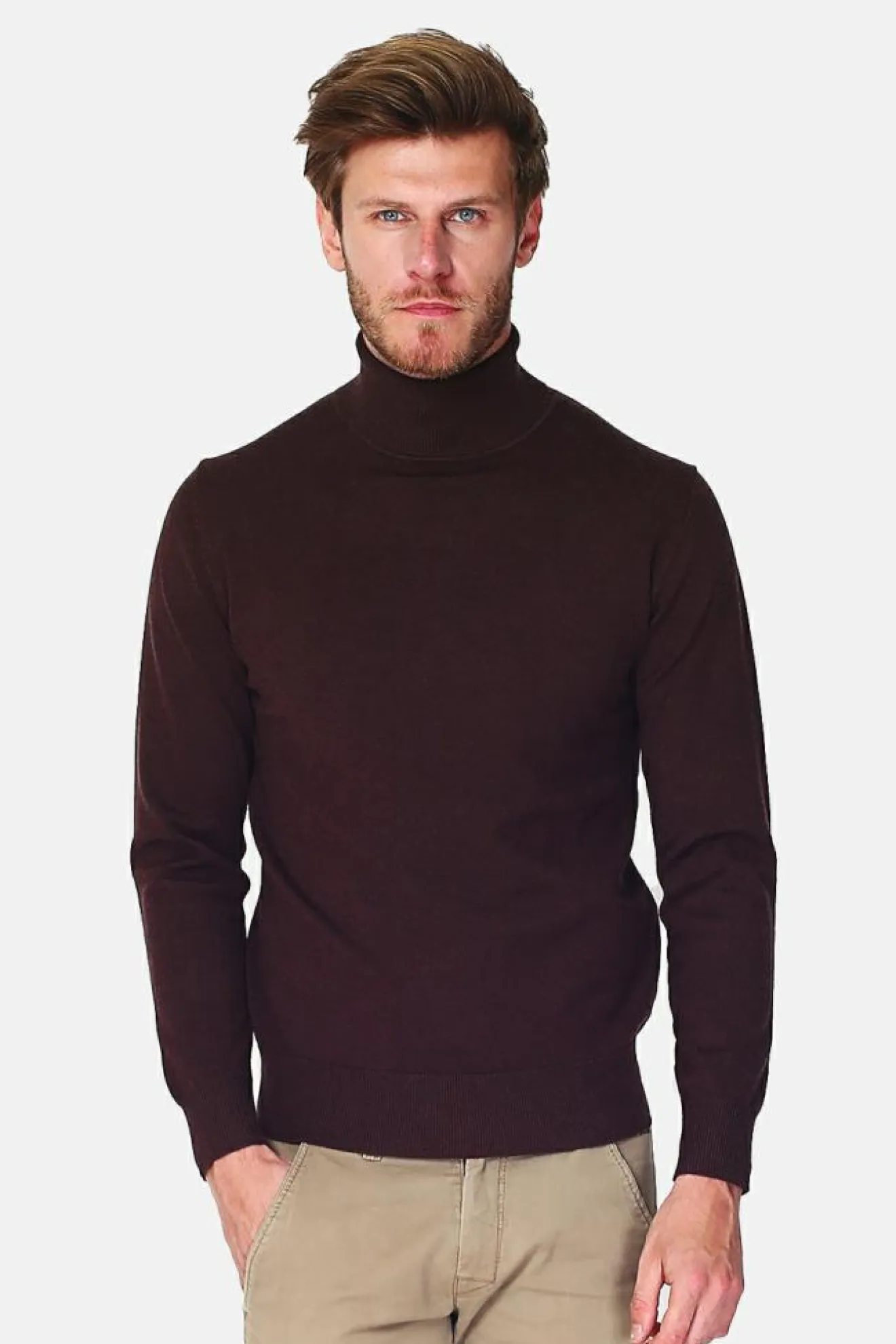 Pull col roule classique à manches longues tricotage en 3 fils