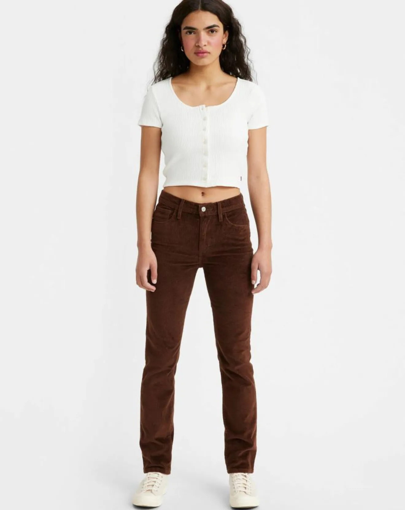 Ce jean droit Levis en velours côtelé est doté d’une taille très haute, d’une braguette zippée rehaussée d’un bouton, de 2 poches cavalières et une poche ticket sur l’avant ainsi que de 2 poches plates arrières.