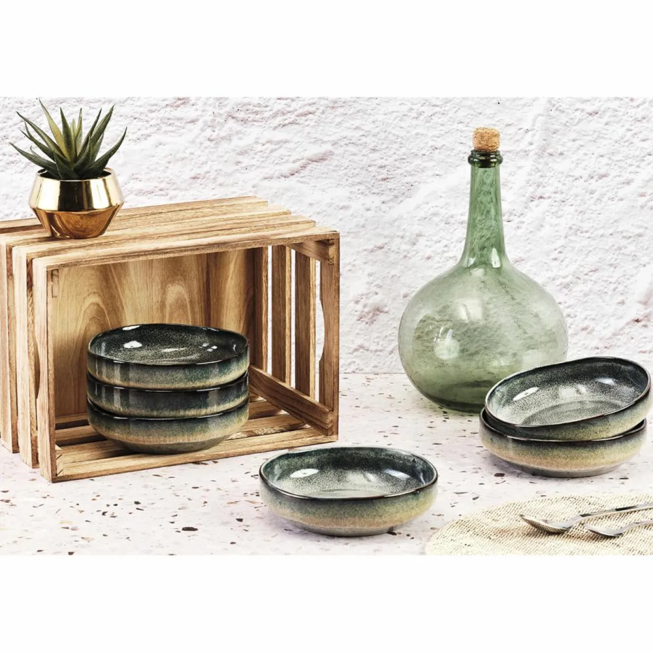 Ce bol au caractère naturel présente des effets réactifs et formes asymétriques qui rendent chaque pièce unique