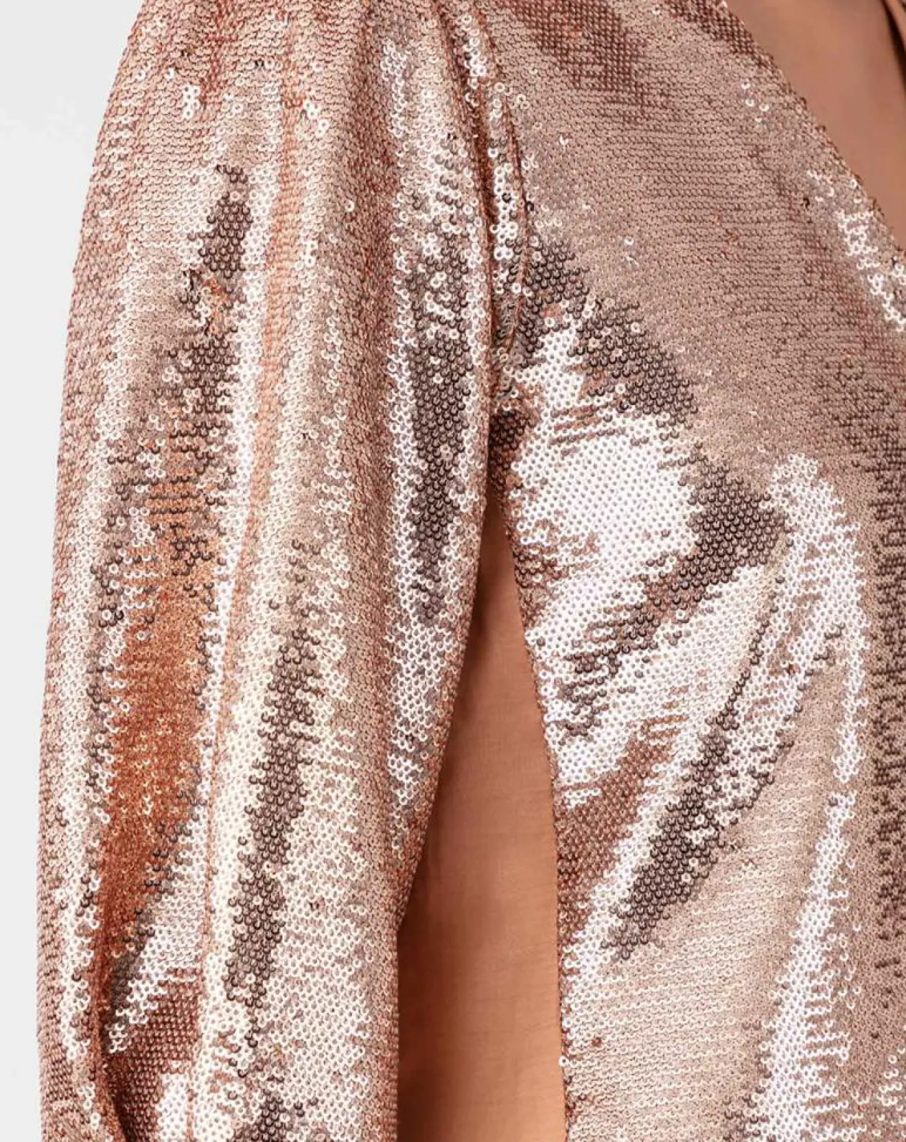 Silhouette éclatante et moderne assurée grâce à la veste en sequin beige doré, ELSIE