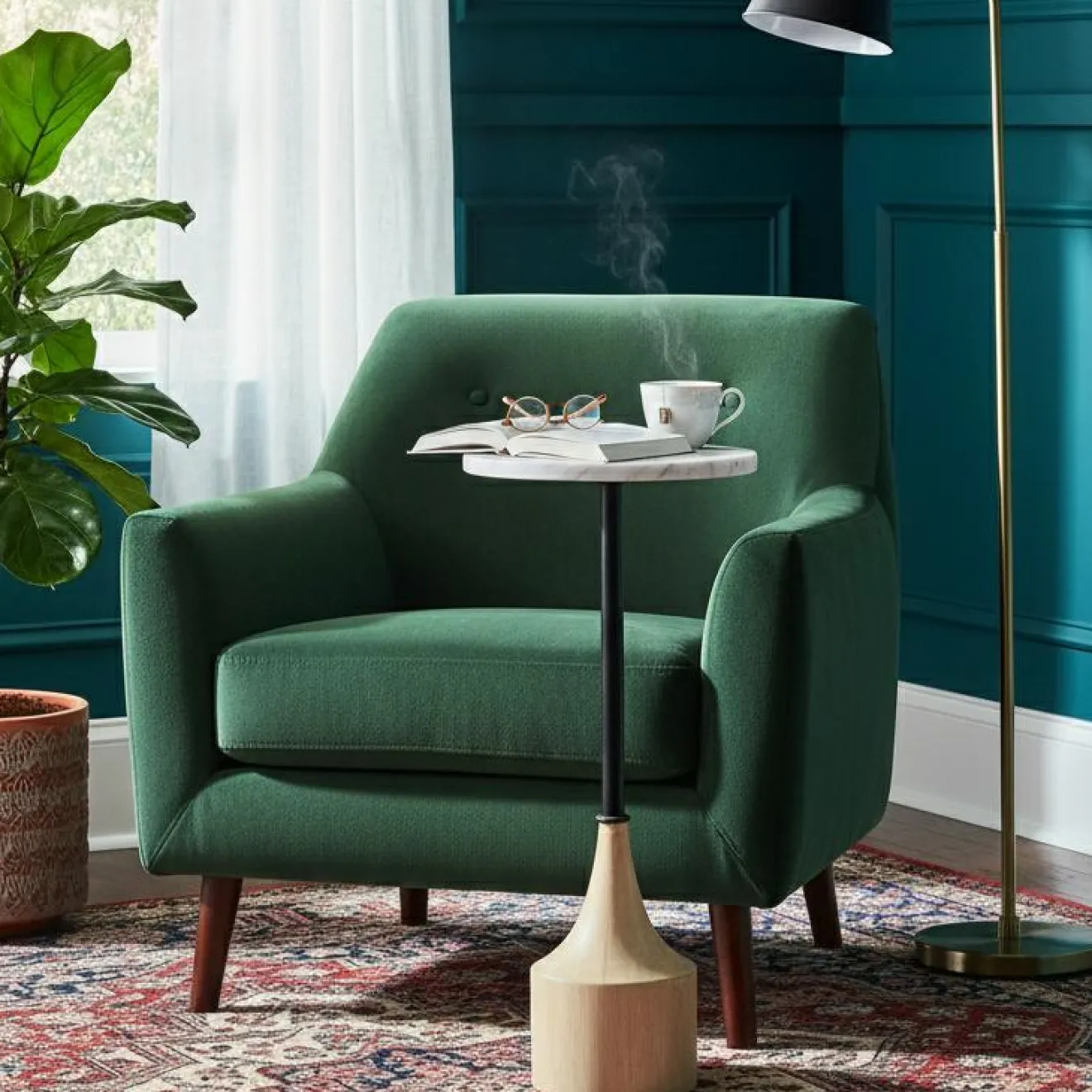 Cette table d’appoint polyvalente est parfaite pour poser vos boissons, collations ou objets décoratifs pendant que vous vous détendez sur votre canapé. Sa taille compacte en fait un excellent ajout aux espaces plus petits, offrant fonctionnalité sans sacrifier le style. Sa construction robuste assure une stabilité, en faisant une pièce fiable pour une utilisation quotidienne.