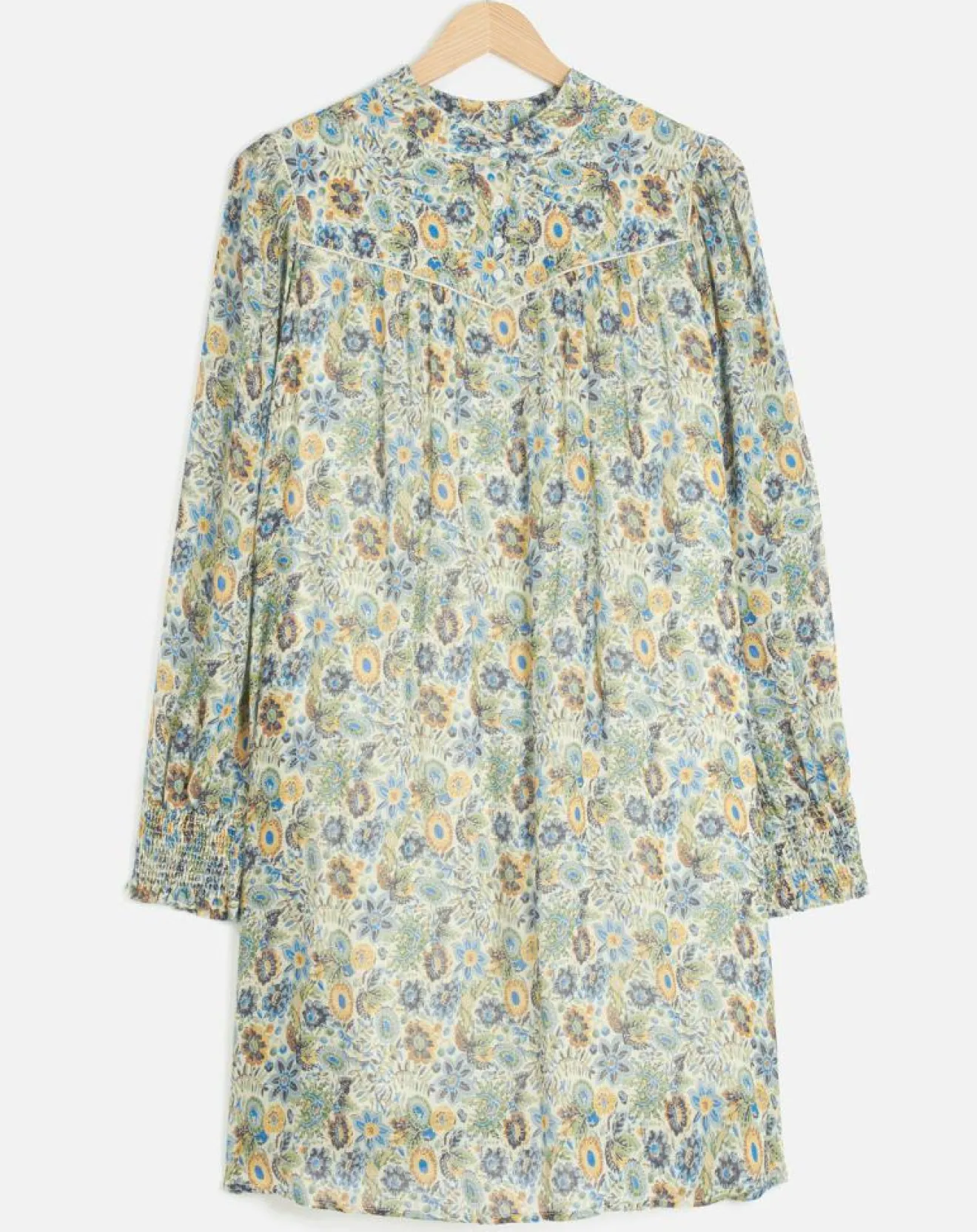 Sa coupe large vous laissera libre de vos mouvements, tandis que ses manches aux poignets smockés et son col Mao affineront le style de chacune