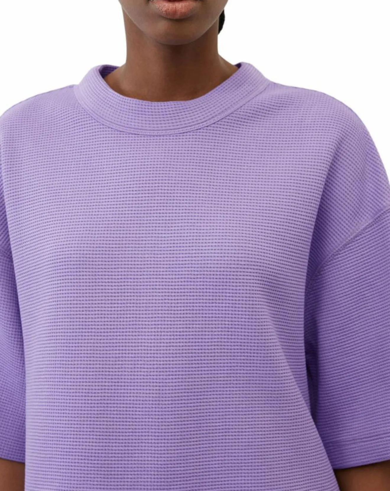 Nouveauté pour votre garde-robe : le t-shirt court et très ample orné d’une texture gaufrée moderne.