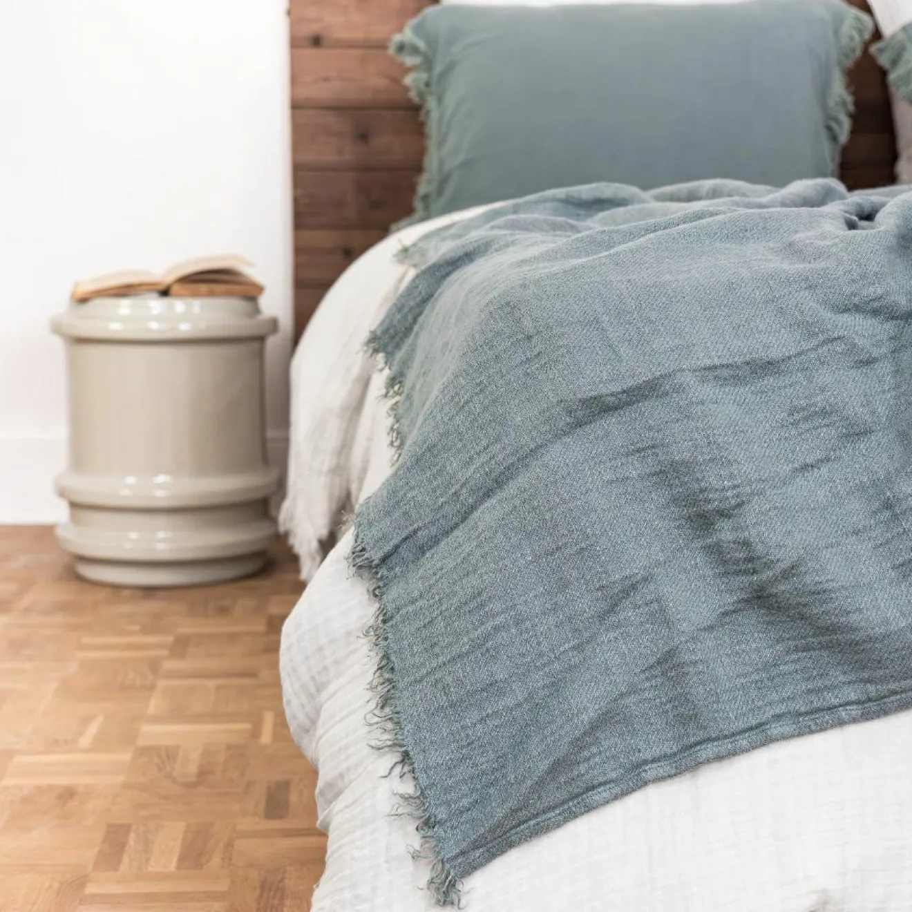 Bed and Philosophy Coussin frangé en lin bleu 50x70cm