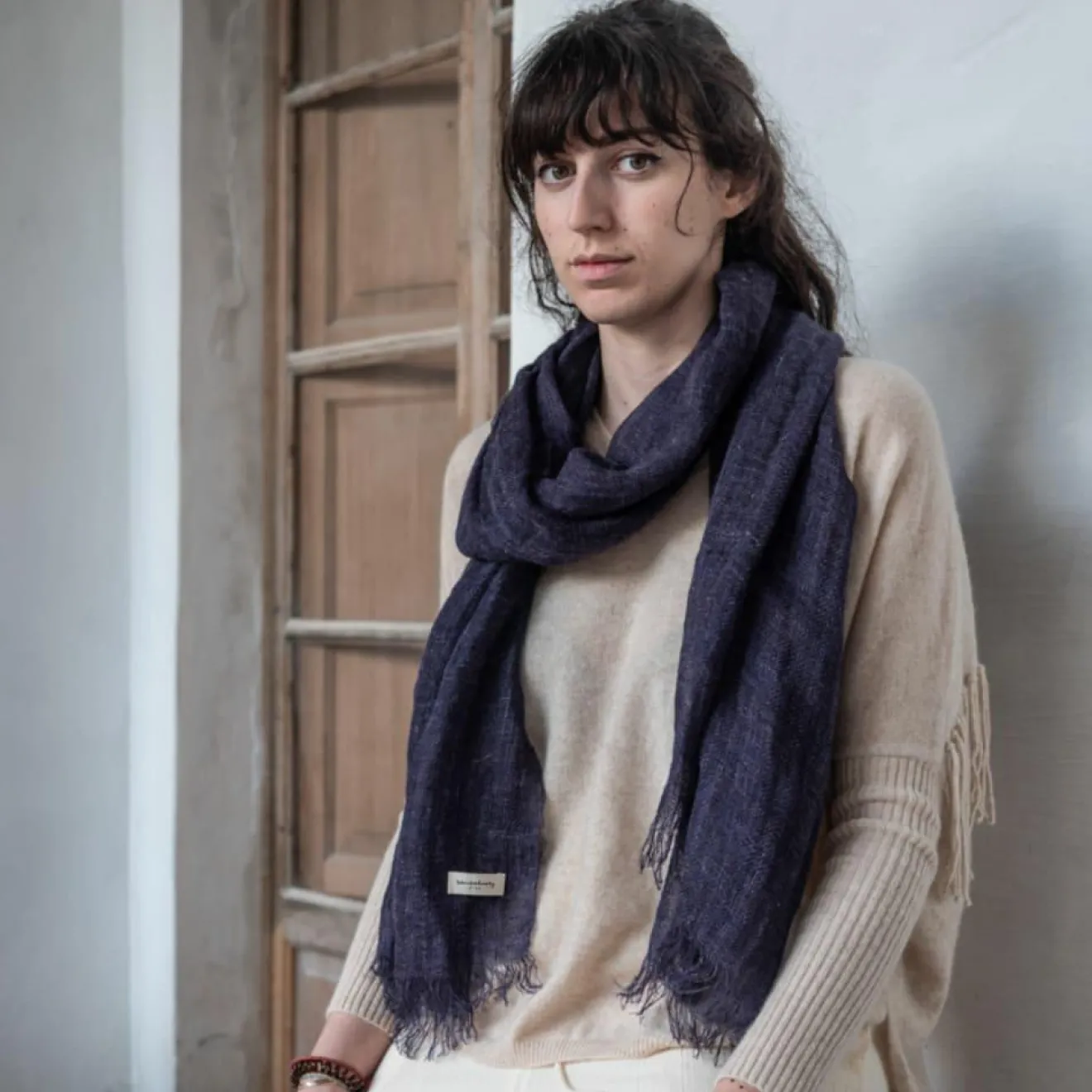 Produit versatile : peut s’utiliser également en étole ou se transforme en plaid léger