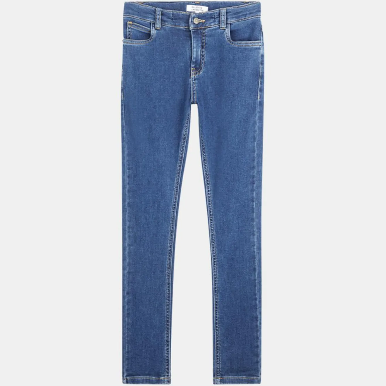 Ce jegging effet denim Galeries Lafayette confectionné en coton stretch, présente une taille boutonnée, une fermeture à glissière et 5 poches.