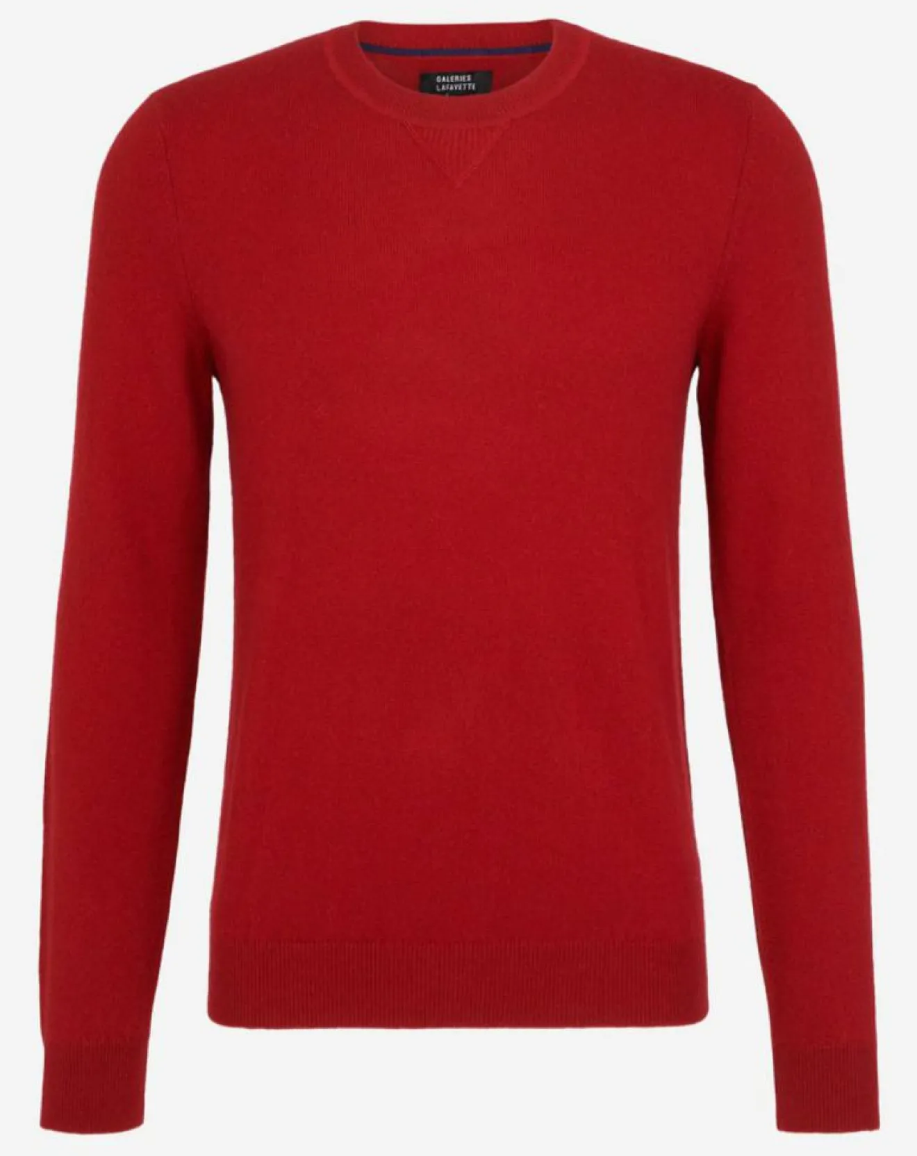 Ce pull fin en cachemire droit Galeries Lafayette est muni d’un col rond, de manches longues et de finitions côtelées