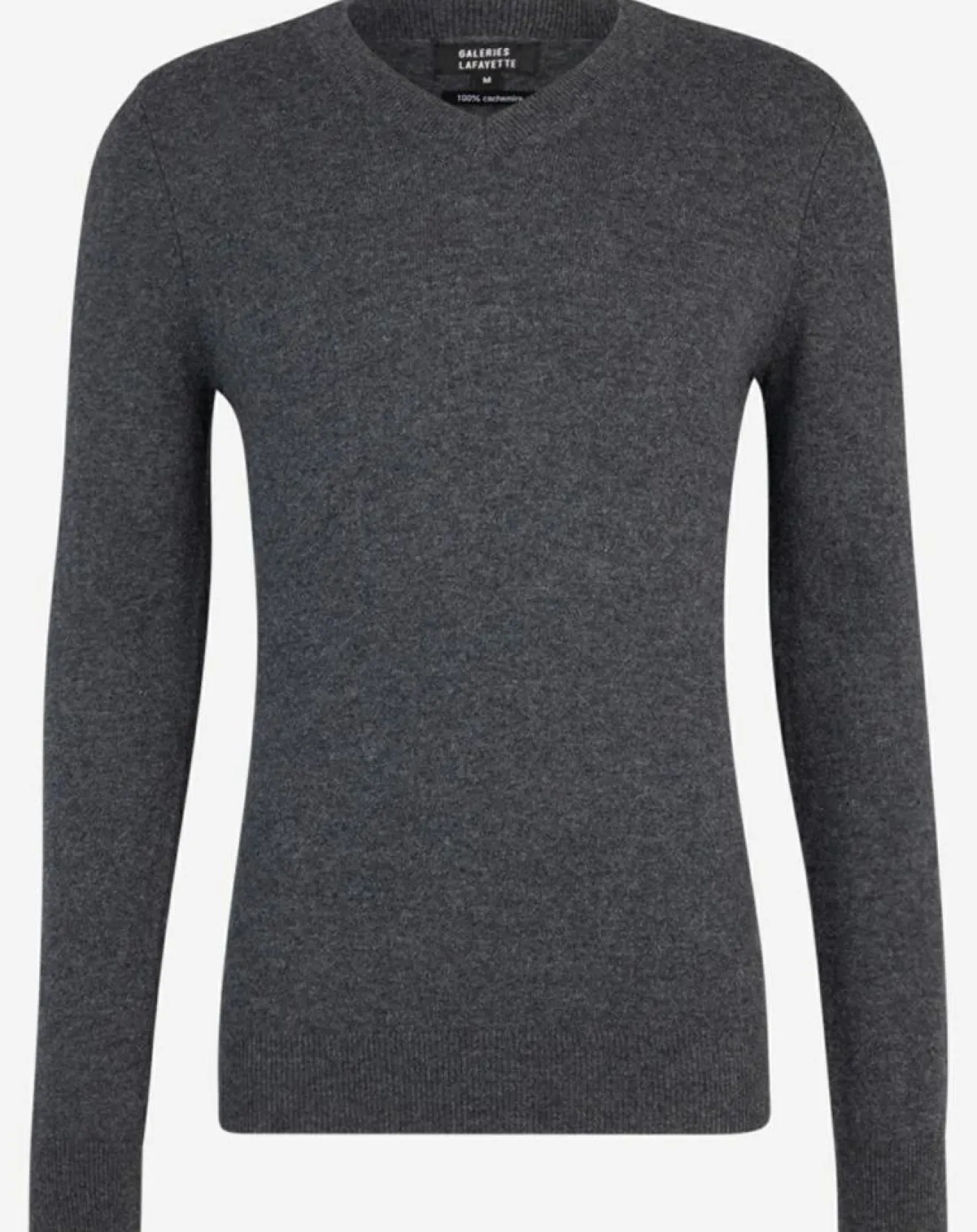 Ce pull droit Galeries Lafayette en cachemire est muni d’un col V, de manches longues et de finitions côtelées.