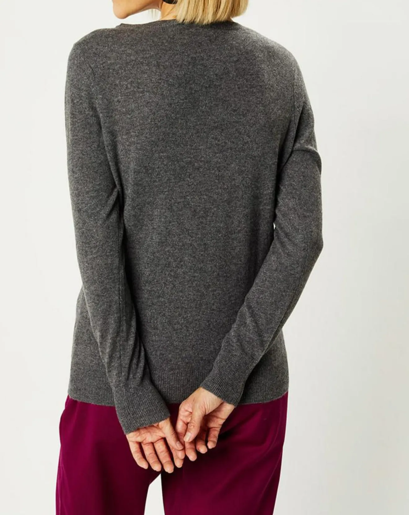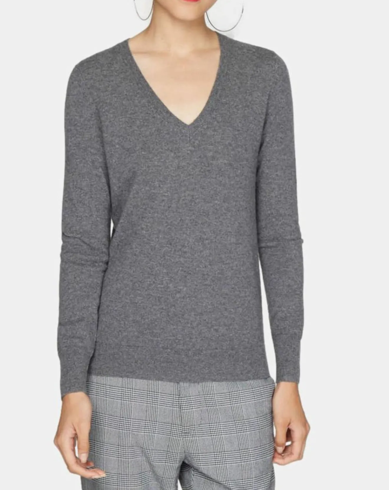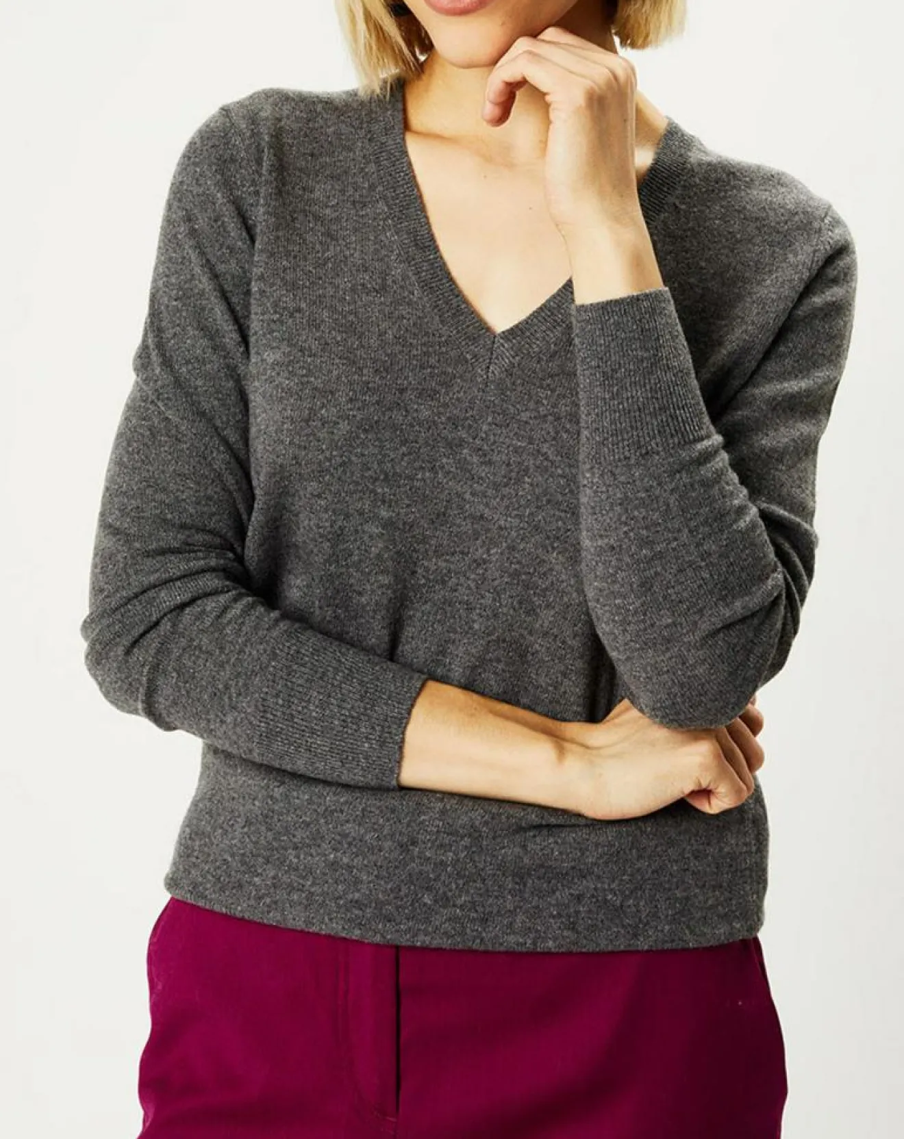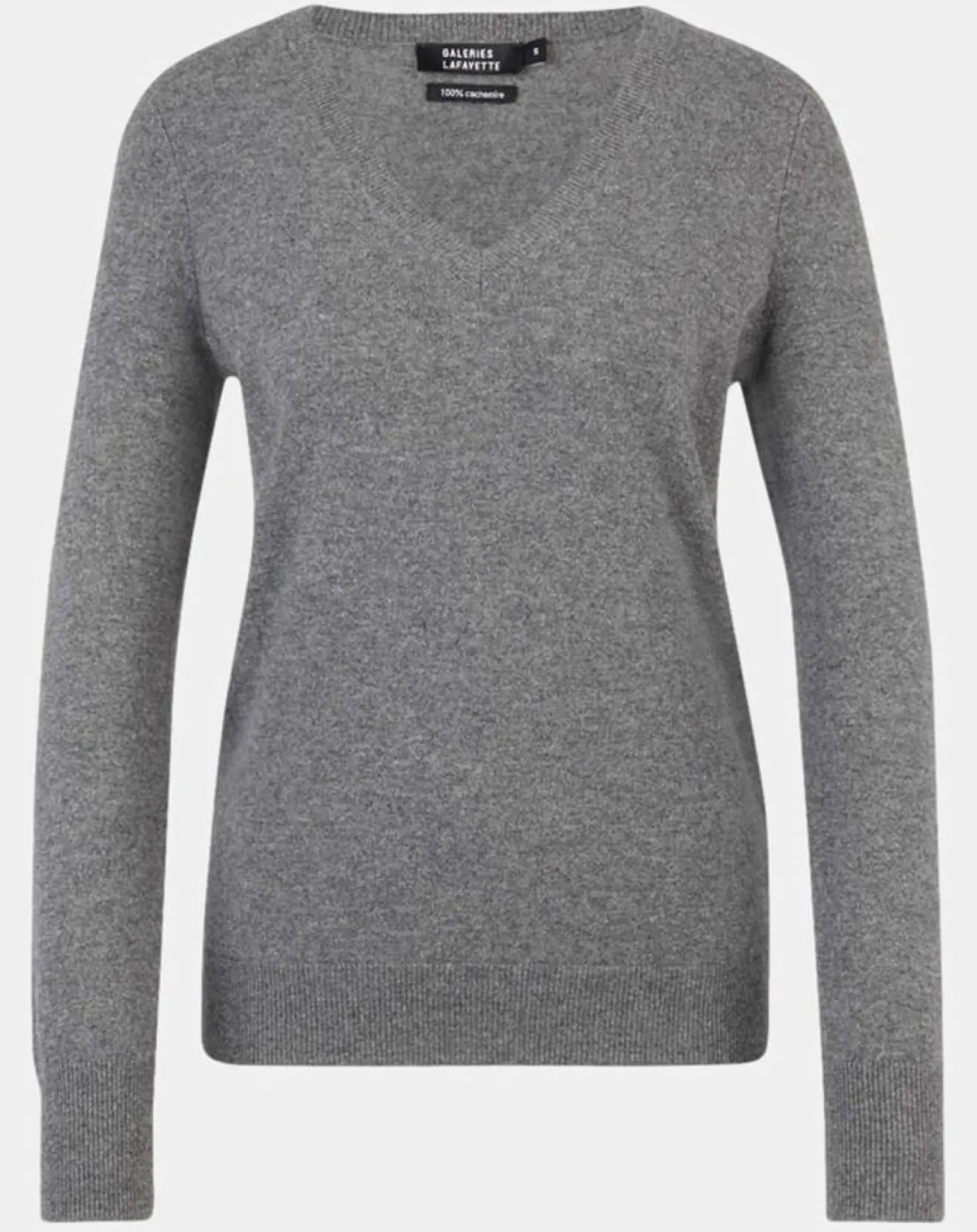 Ce pull droit Galeries Lafayette en cachemire est muni d’un col V, de manches longues et de finitions côtelées.