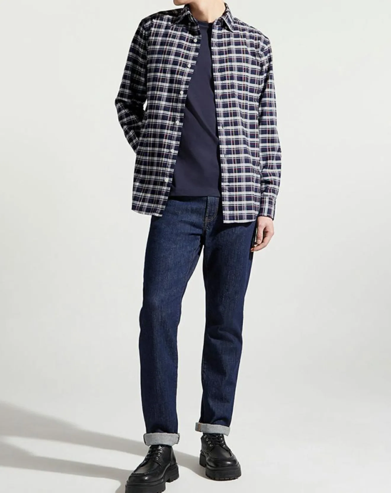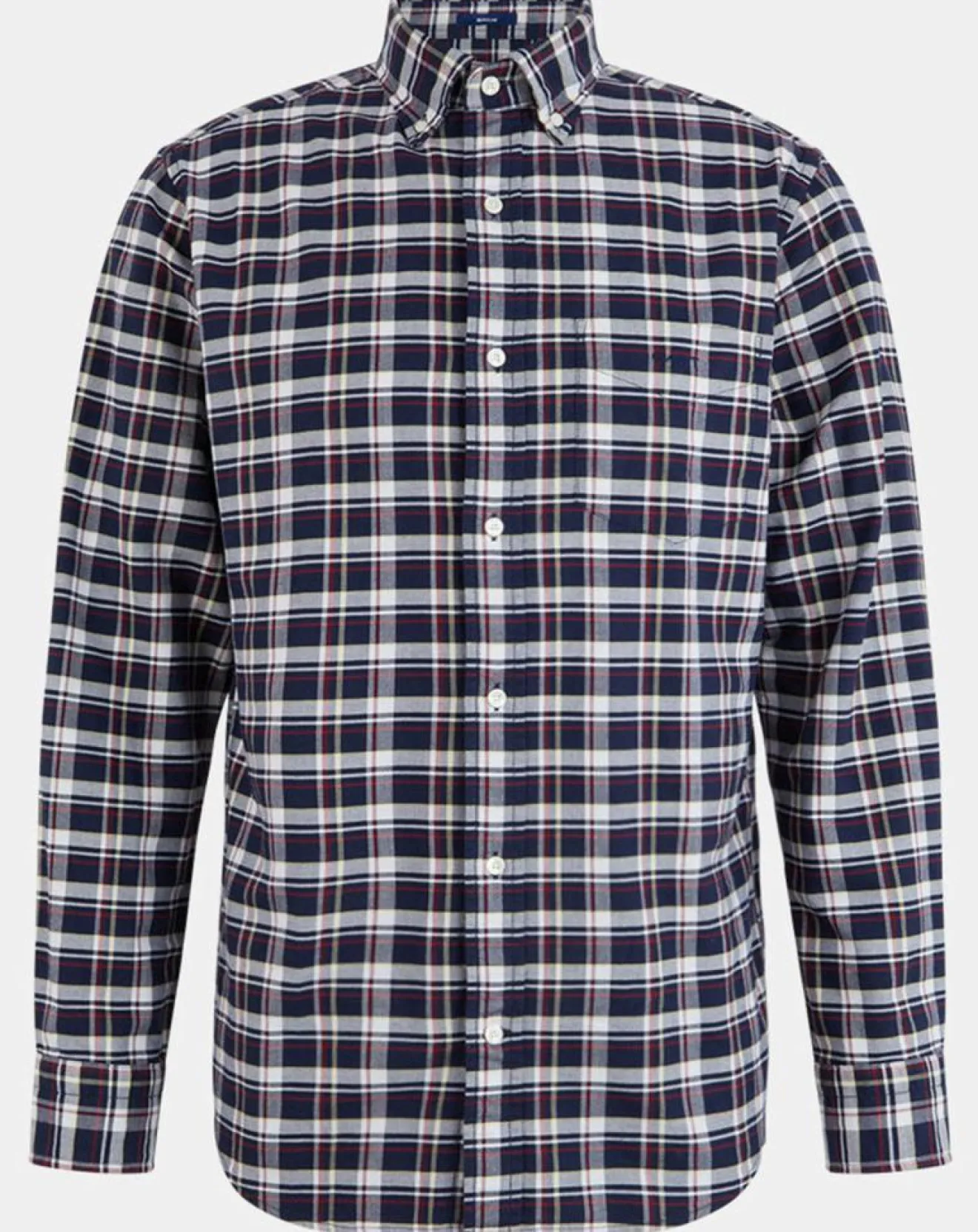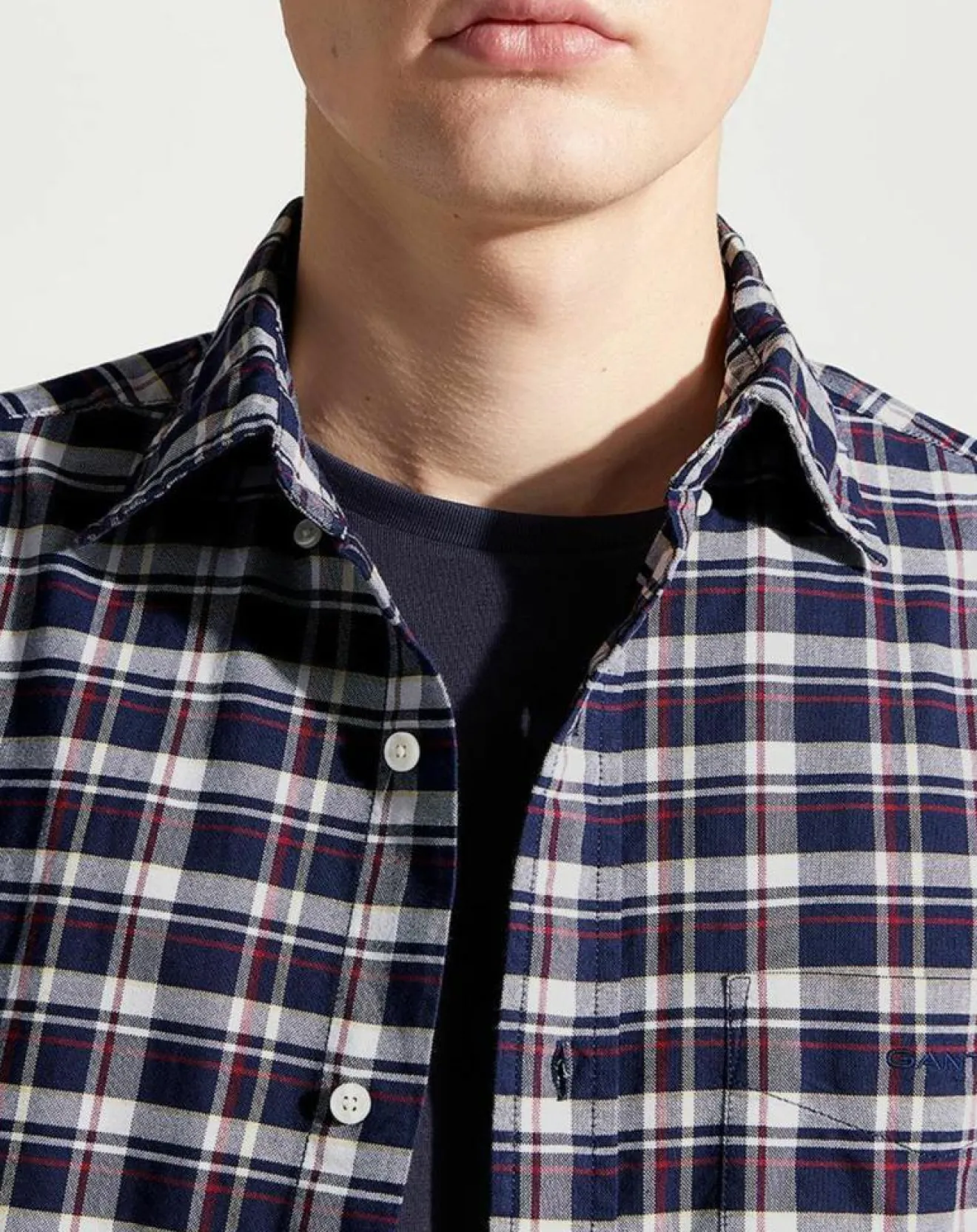 Cette chemise droite Gant en coton est munie d’un imprimé à carreaux, d’un col américain, d’une fermeture boutonnée, d’une poche poitrine ainsi que de poignets ronds 1 bouton ajustable