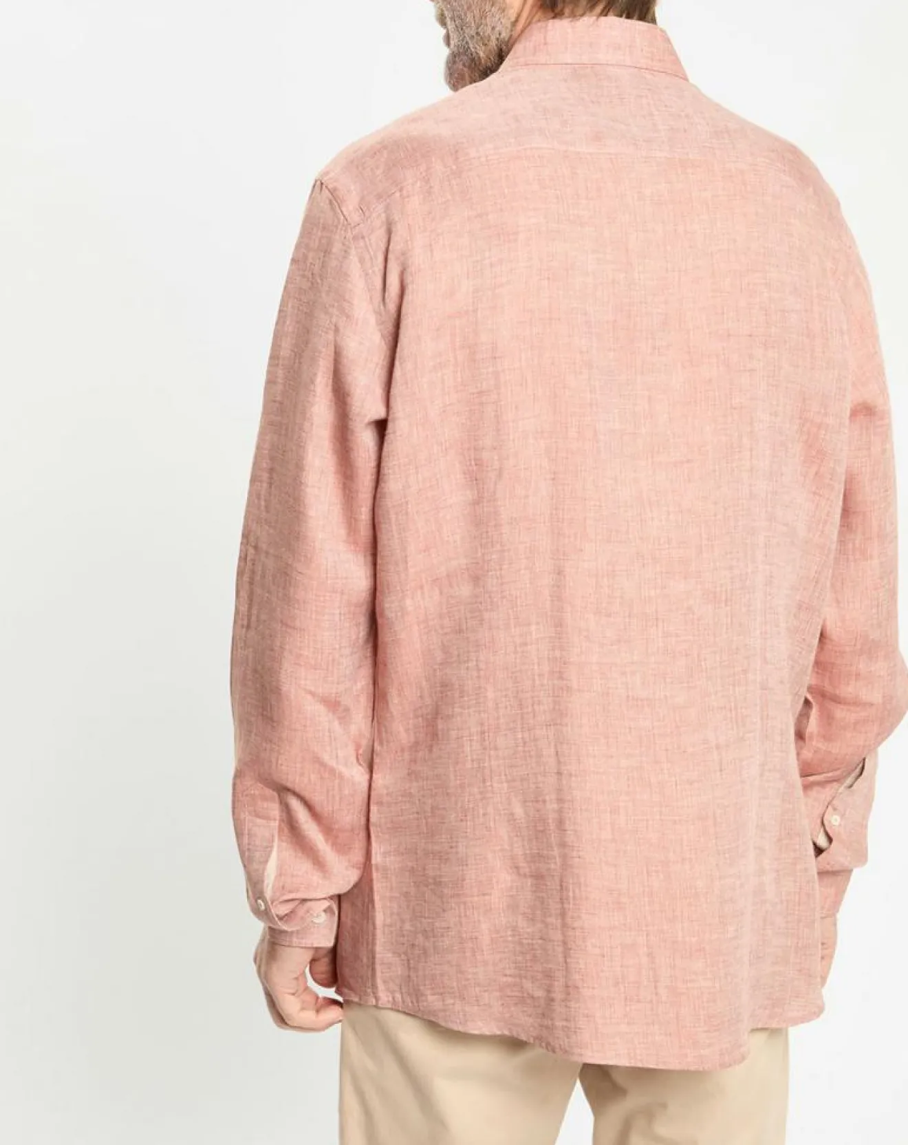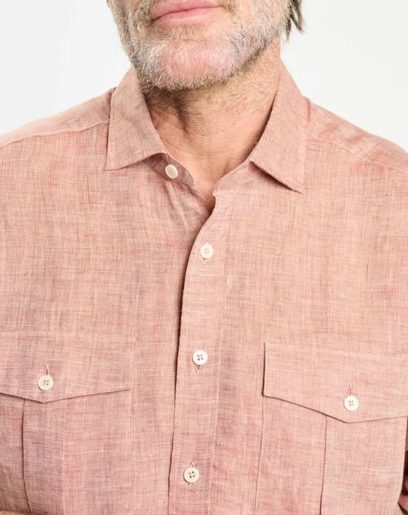 Cette chemise ajustée Hackett London en lin est munie d’un col italien, de manches longues, de poignets carrés à 1 bouton ajustable, d’une fermeture boutonnée, de 2 poches poitrine à rabat et d’une base arrondie
