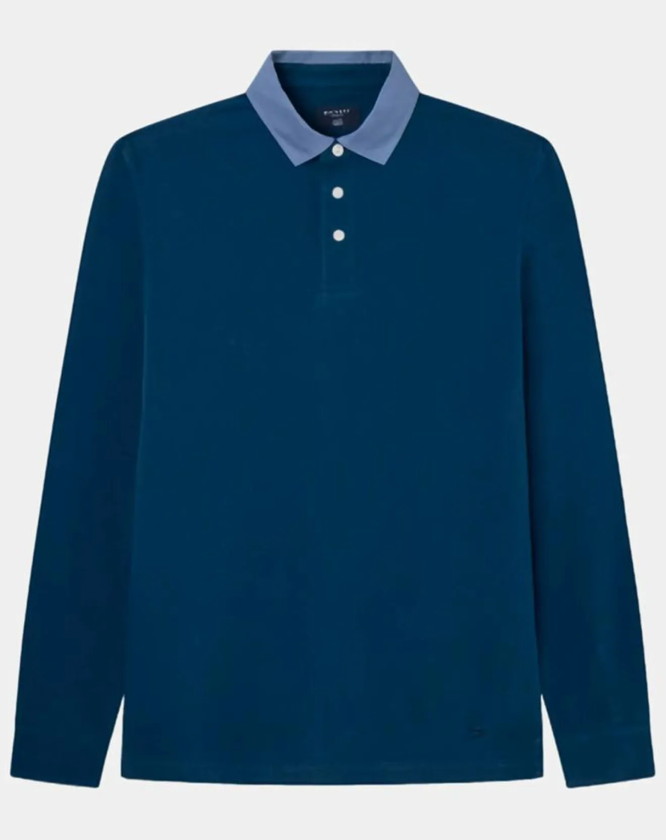 PoloCe polo droit Hackett London en coton se pare d’un col classique contrastant suivi d’une patte à 3 boutons, de manches longues, de poignets ronds à 1 bouton et du logo brodé sur la base avant gauche.