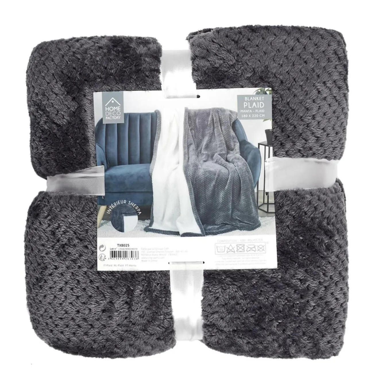 Home Deco Factory Plaid flanelle sherpa XXL gris foncé – 140×200 cm