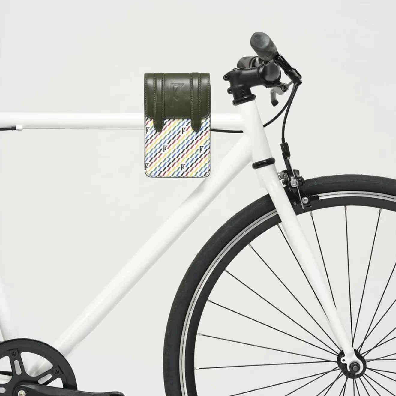 Grâce à la plaque signature FARET en cuir, ce mini sac peut s’attacher élégamment à la ceinture ou s’accrocher aisément sur toutes les parties du vélo, telle que la selle, le panier avant ou encore le cadre, alliant ainsi praticité et élégance