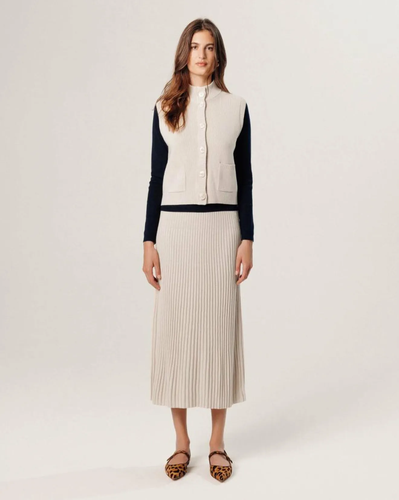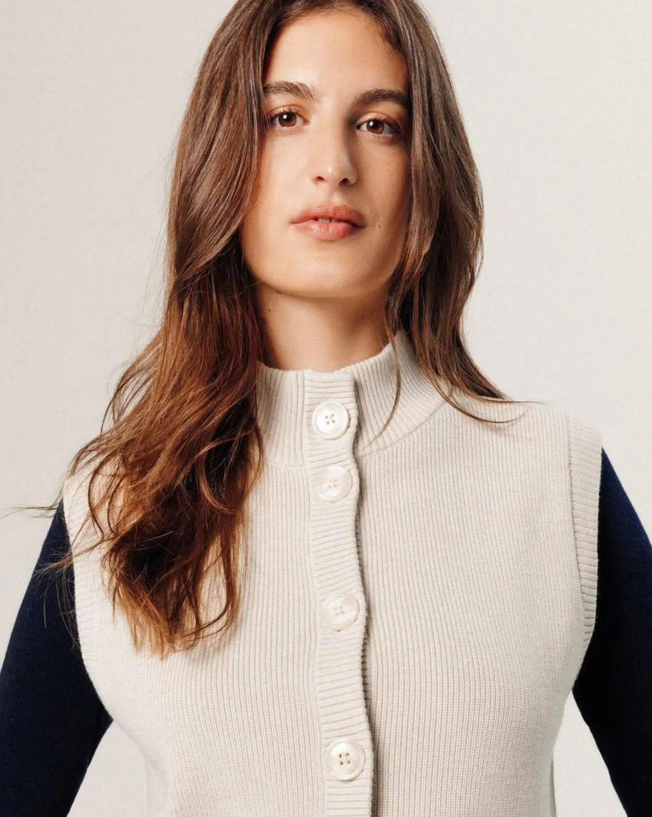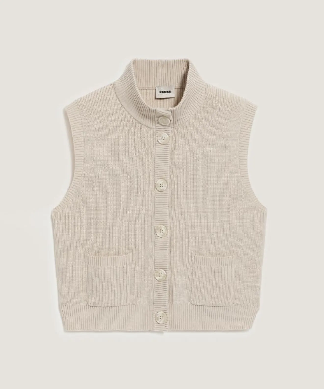 Best Rodier Gilet Sharifa manches courtes col mont blanc écru