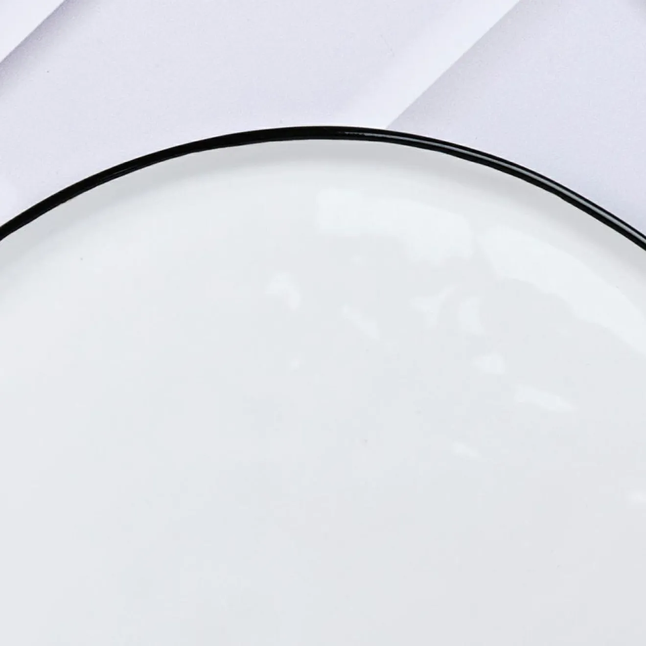 Un liseré noir délicat encadre chaque pièce, ajoutant un contraste moderne à la céramique d’un blanc éclatant