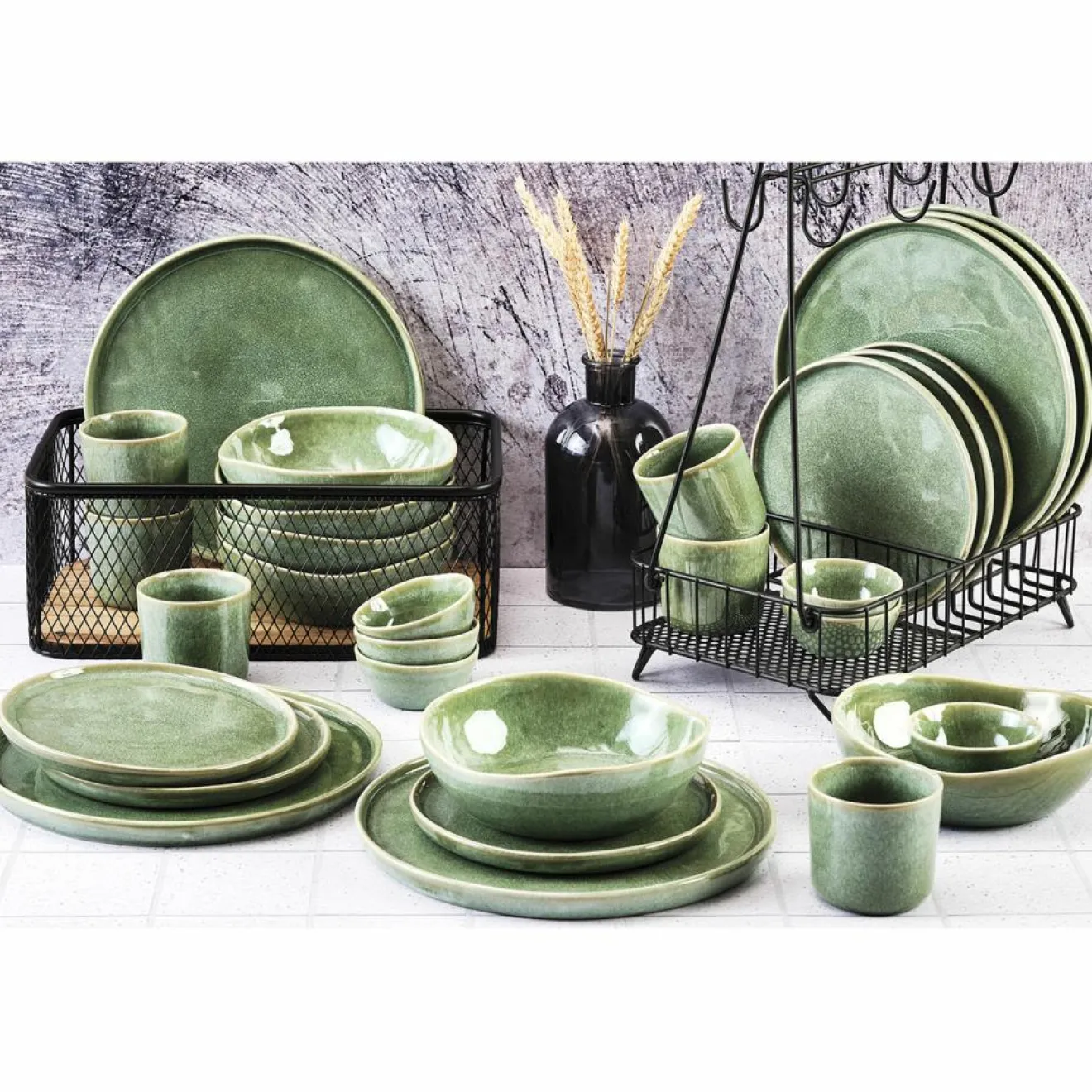 Inspirée d’un style scandinave contemporain, ses formes rectilignes et sa finition en grès réactif émaillé aux effets craquelés posent une ambiance zen et intemporelle