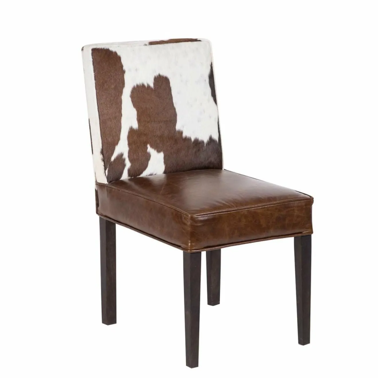 La structure en bois massif d’acacia assure une stabilité solide et une esthétique rustique, accentuant le contraste entre la chaleur du bois et la robustesse du cuir de vache. La finition noisette apporte une touche de sophistication et de raffinement à cette chaise, la rendant aussi belle à regarder qu’à utiliser. À noter, chaque modèle étant réalisé en cuir naturel, les variations dans les motifs et les nuances de couleur sont à prévoir ce qui rend cette chaise cuir de vache unique.