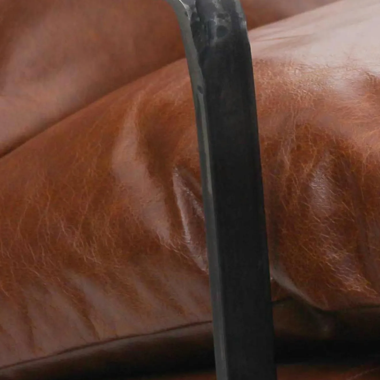 Le piétement en métal avec une finition en peinture poudrée noire ajoute une touche de modernité et de sophistication à l’ensemble, créant un contraste élégant avec le cuir marron riche
