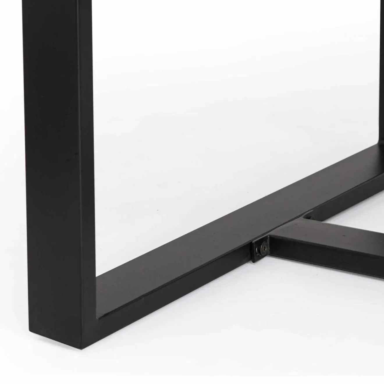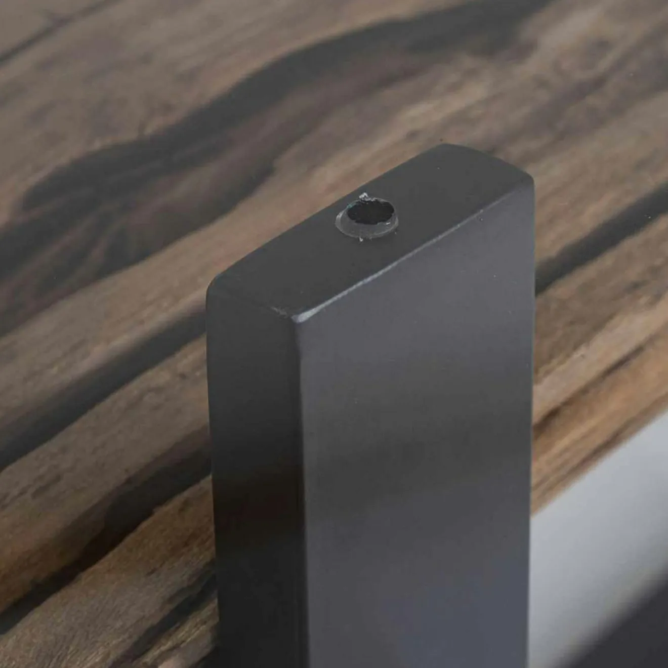 Offrant une fusion équilibrée entre le caractère du bois recyclé, la modernité du métal noir et l’élégance du verre, elle crée un point focal captivant dans votre espace de repas.