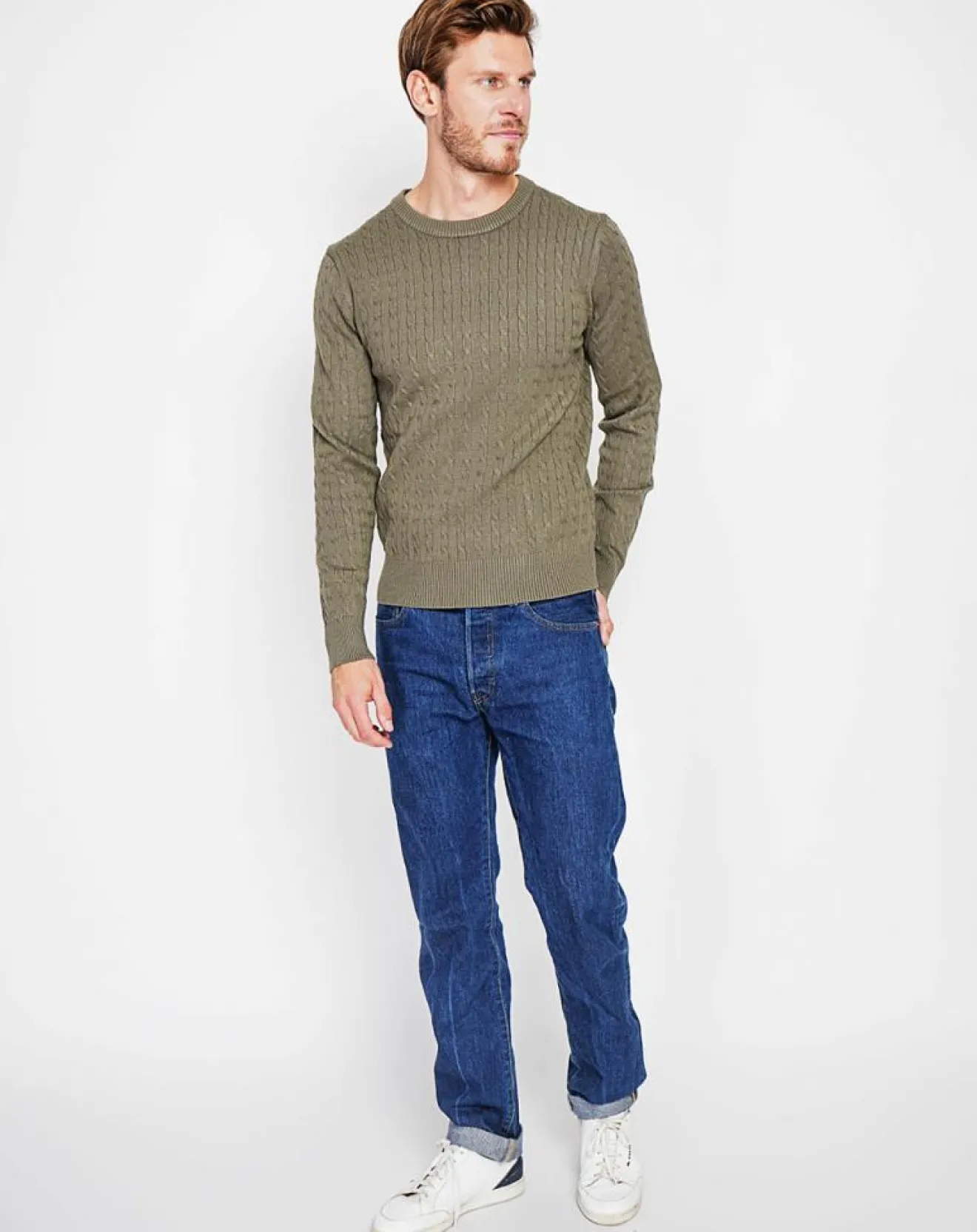 Pull col ras du cou torsadé à manches longues