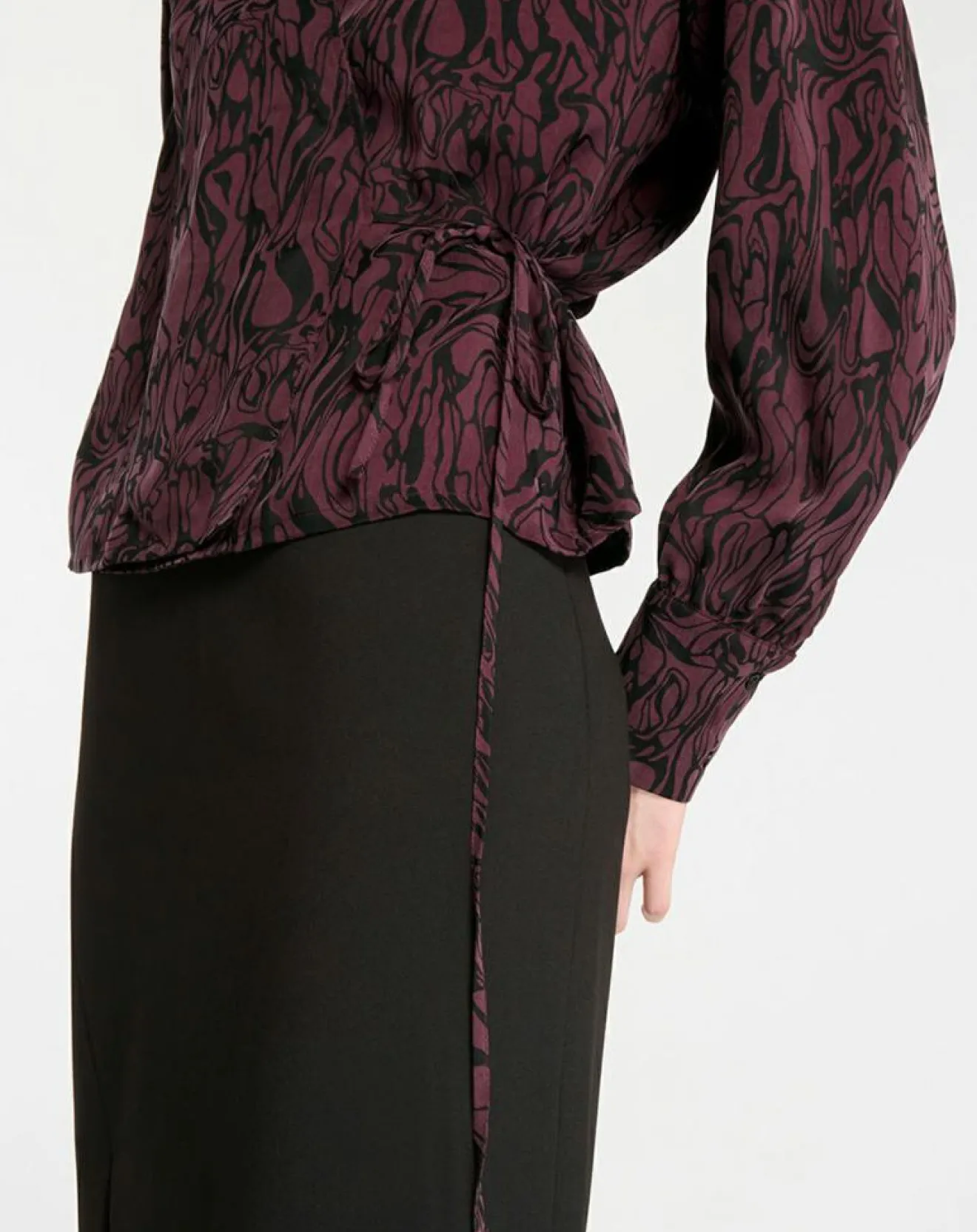 Ce top cache coeur Galeries Lafayette est muni d’un imprimé fantaisie, de manches longues légèrement bouffantes aux poignets larges boutonnés et d’une taille à nouer.