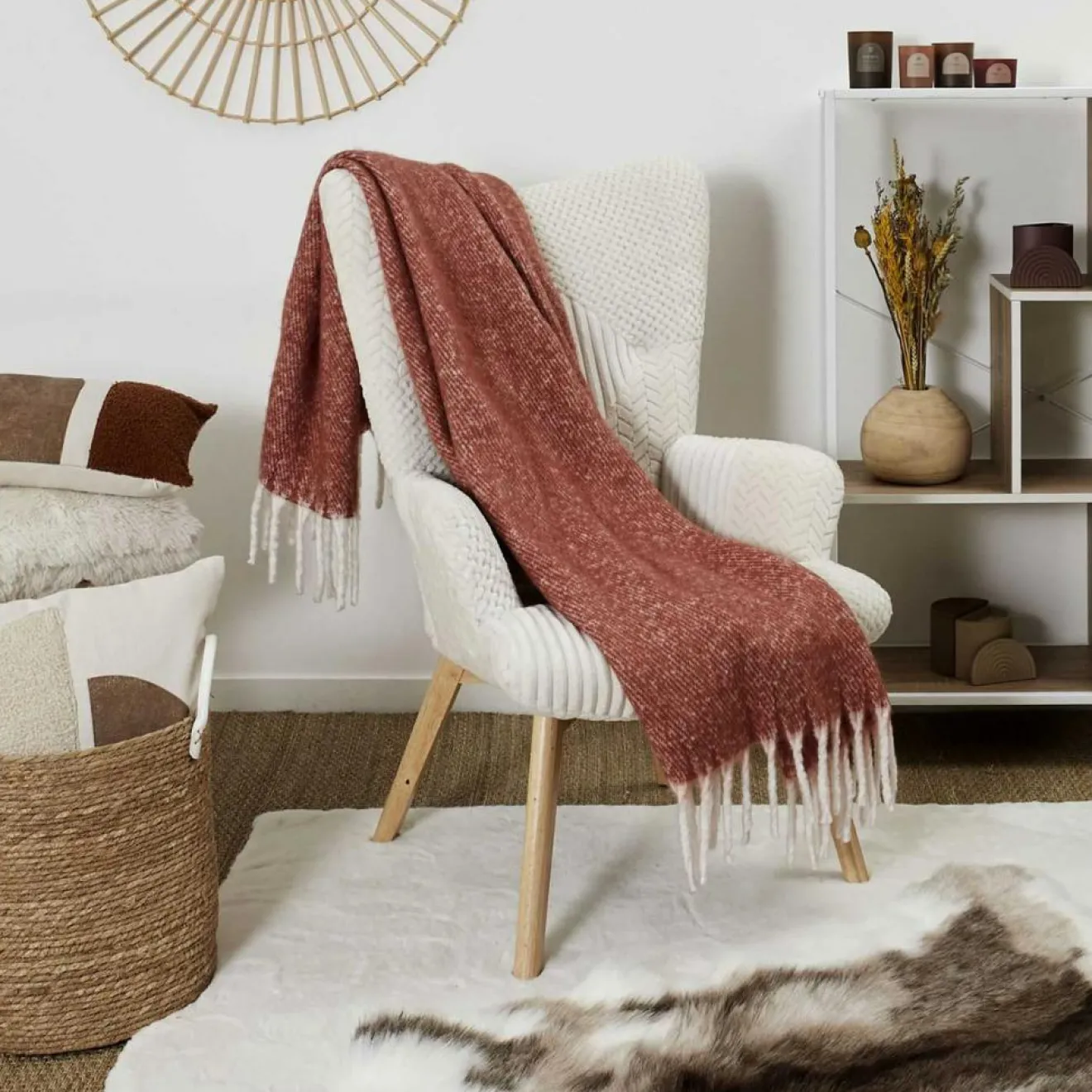 Ce modèle terracotta à franges vous séduira à coup sûr par son design sa douceur, avec lui vous serez incontestablement au chaud