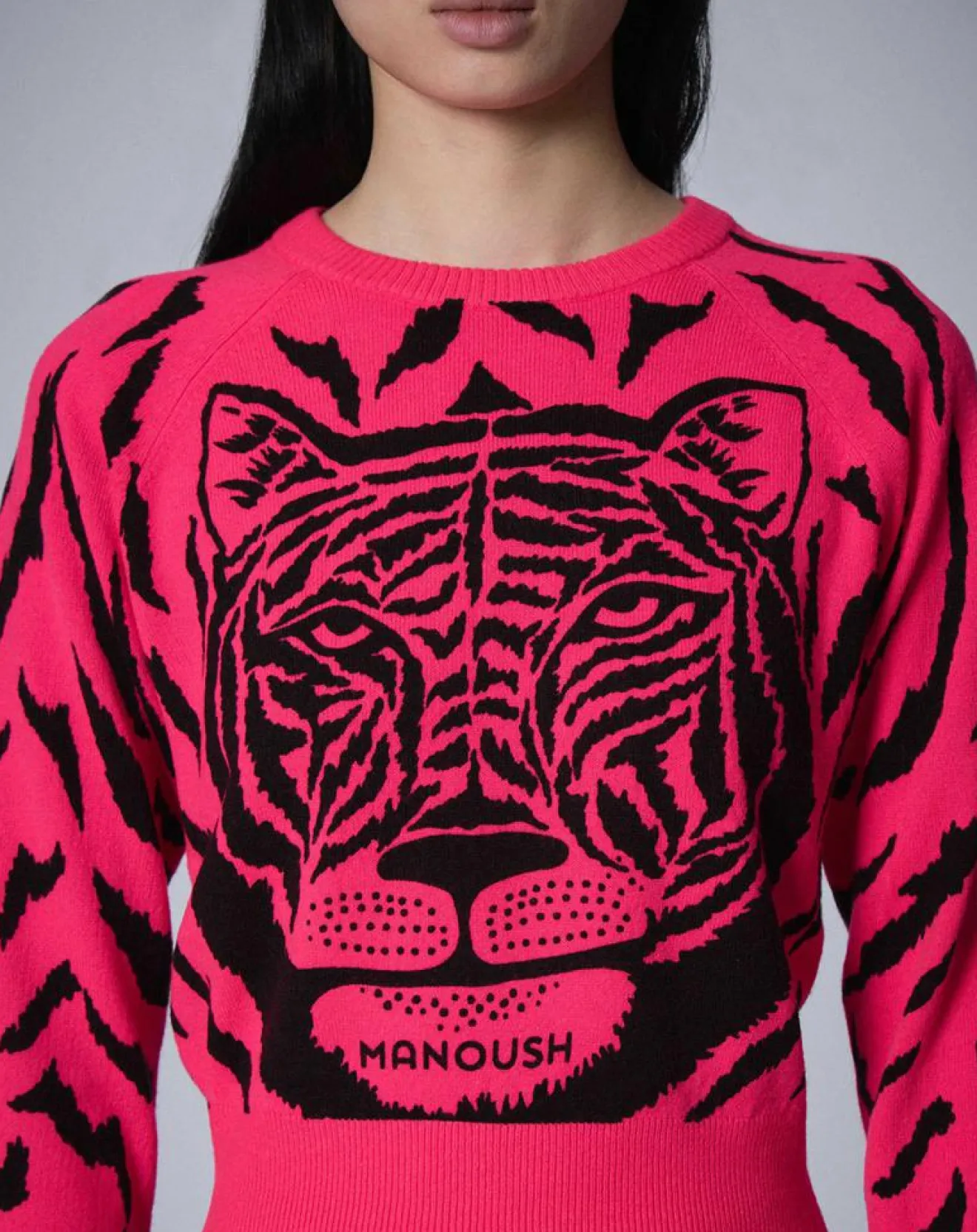 Bord côte côtelé à l’encolure sur le bas des manches et du pull.
