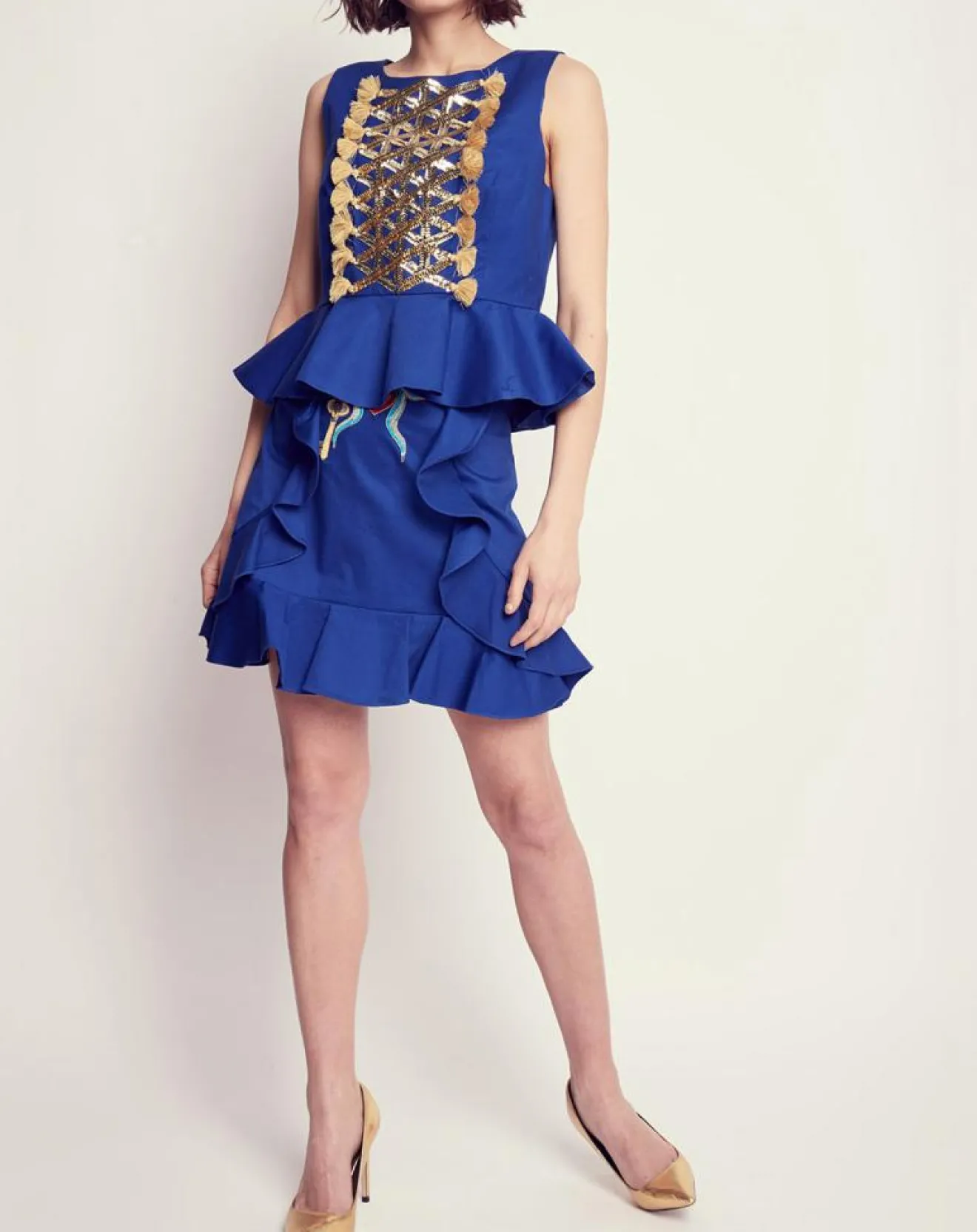 Plastron avec sequins et pompons sur le devant