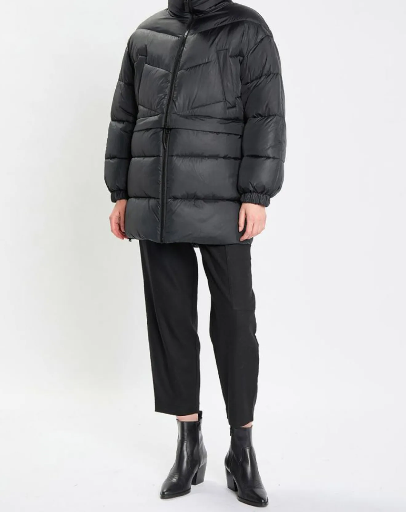 Avec une petite astuce, la longue doudoune devient un modèle court moderne et ultra décontracté.